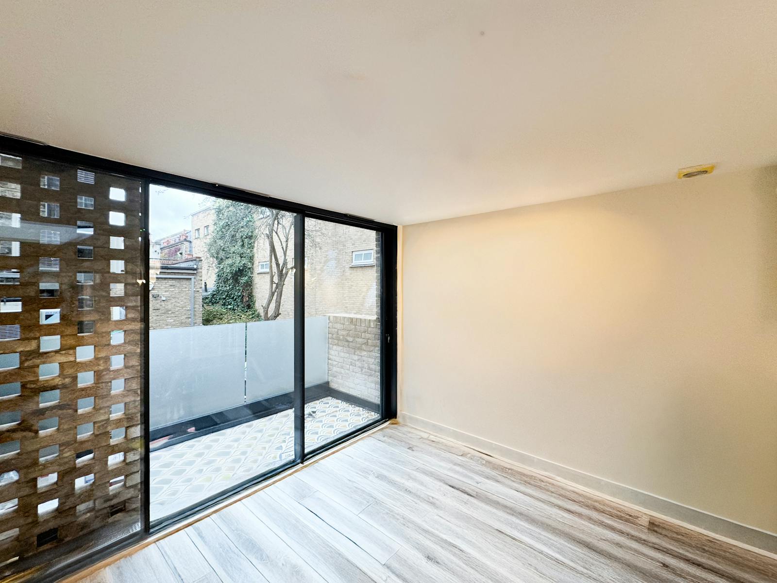 Throughout both levels, feature brick-slip walls and underfloor heating create a warm, contemporary feel. Fitted kitchens are provided on each floor, and the rear terrace, accessed via full height sliding glass doors, offers excellent natural light and a tranquil setting.