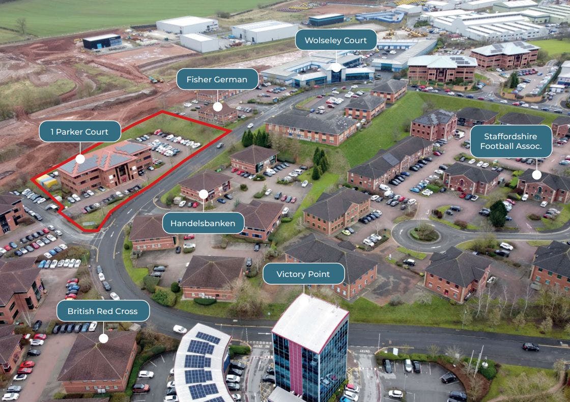 1 Parker Court comprises a substantial headquarter office premises extending in total to approximately 25,170 sqft (2,338 sqm) occupying a prominent position within the Staffordshire Technology Park. The contemporary, three-storey office building is well appointed internally, offering a combination of open plan and individual offices, together with flexible meeting spaces.