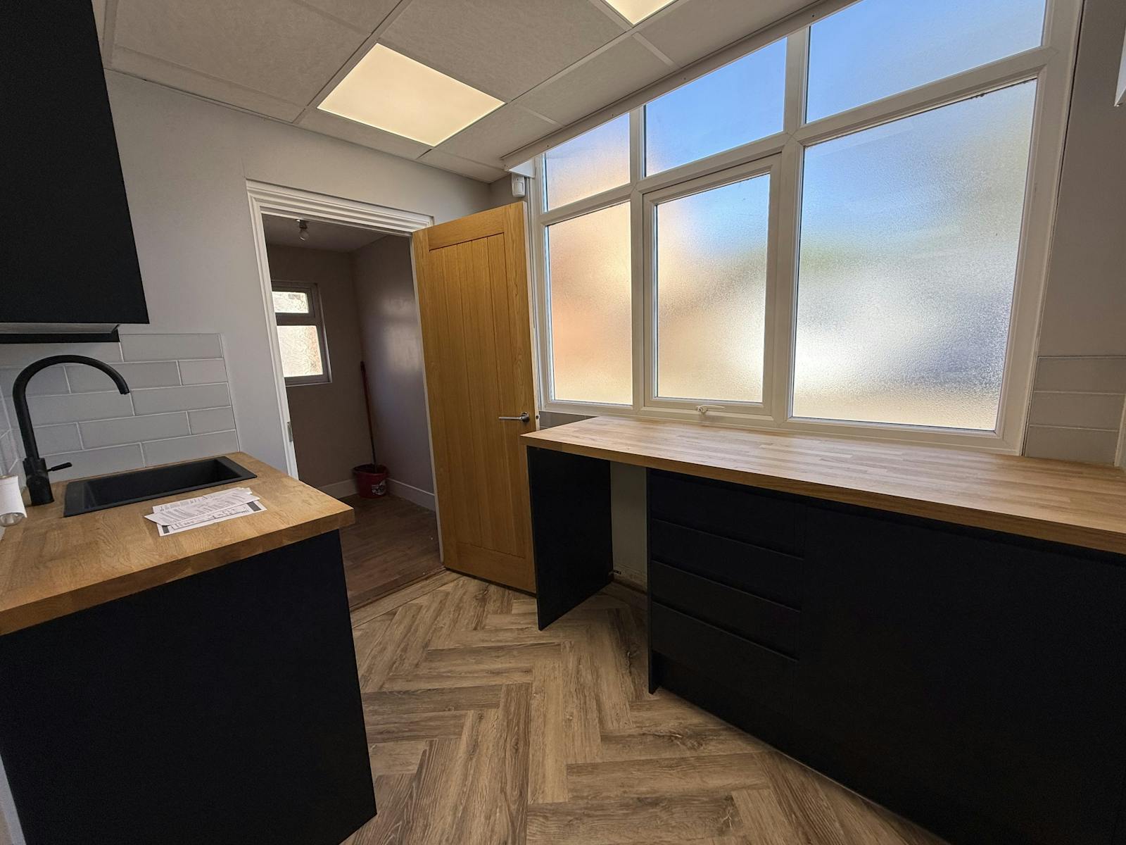 The detached single‐storey block‐built office building has recently been refurbished to a very high standard, fitted with carpet / Kardean throughout, double glazing, new suspended ceilings with LED lighting, gas central heating & radiators. The office is self contained with fitted kitchenette and seperate male and female toilets.
