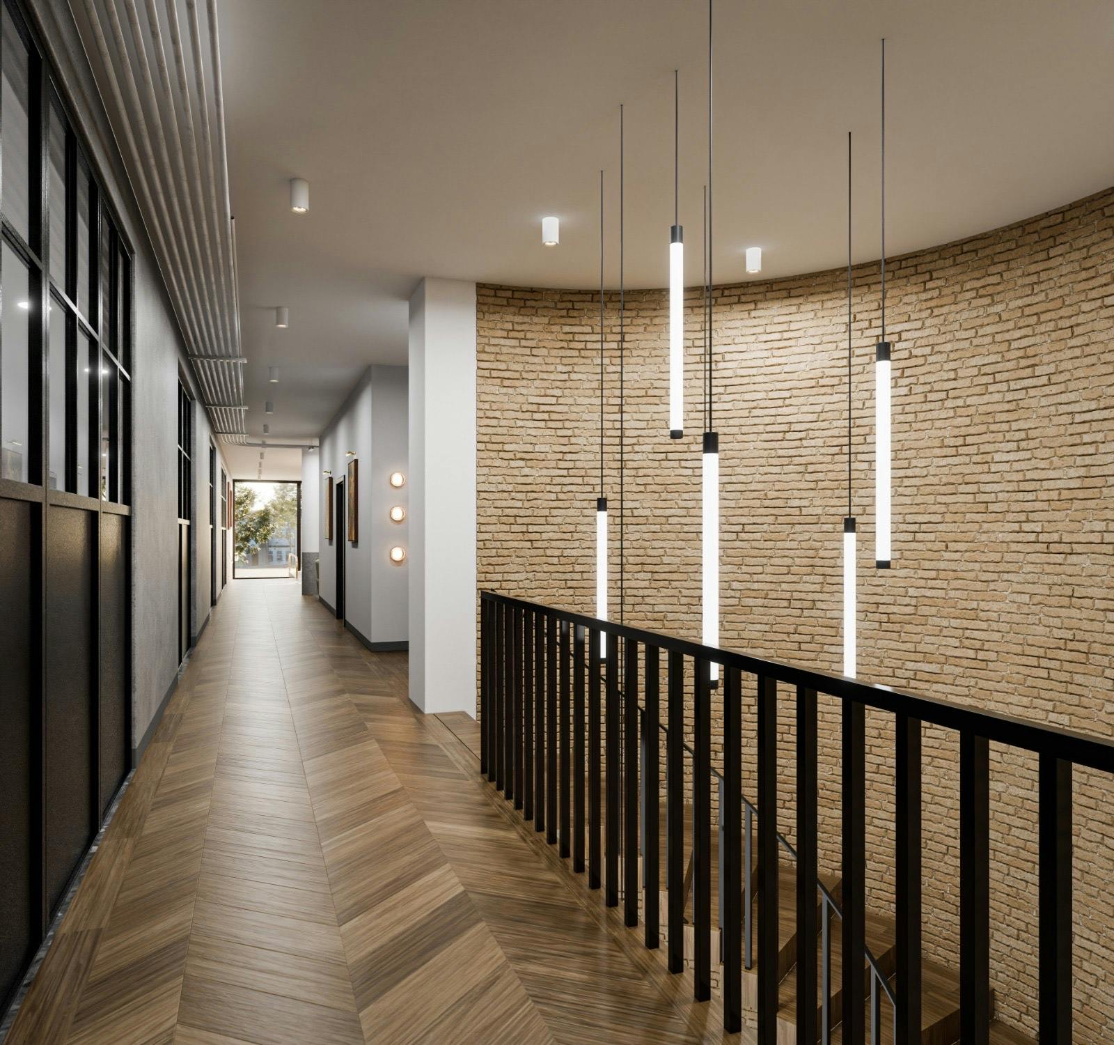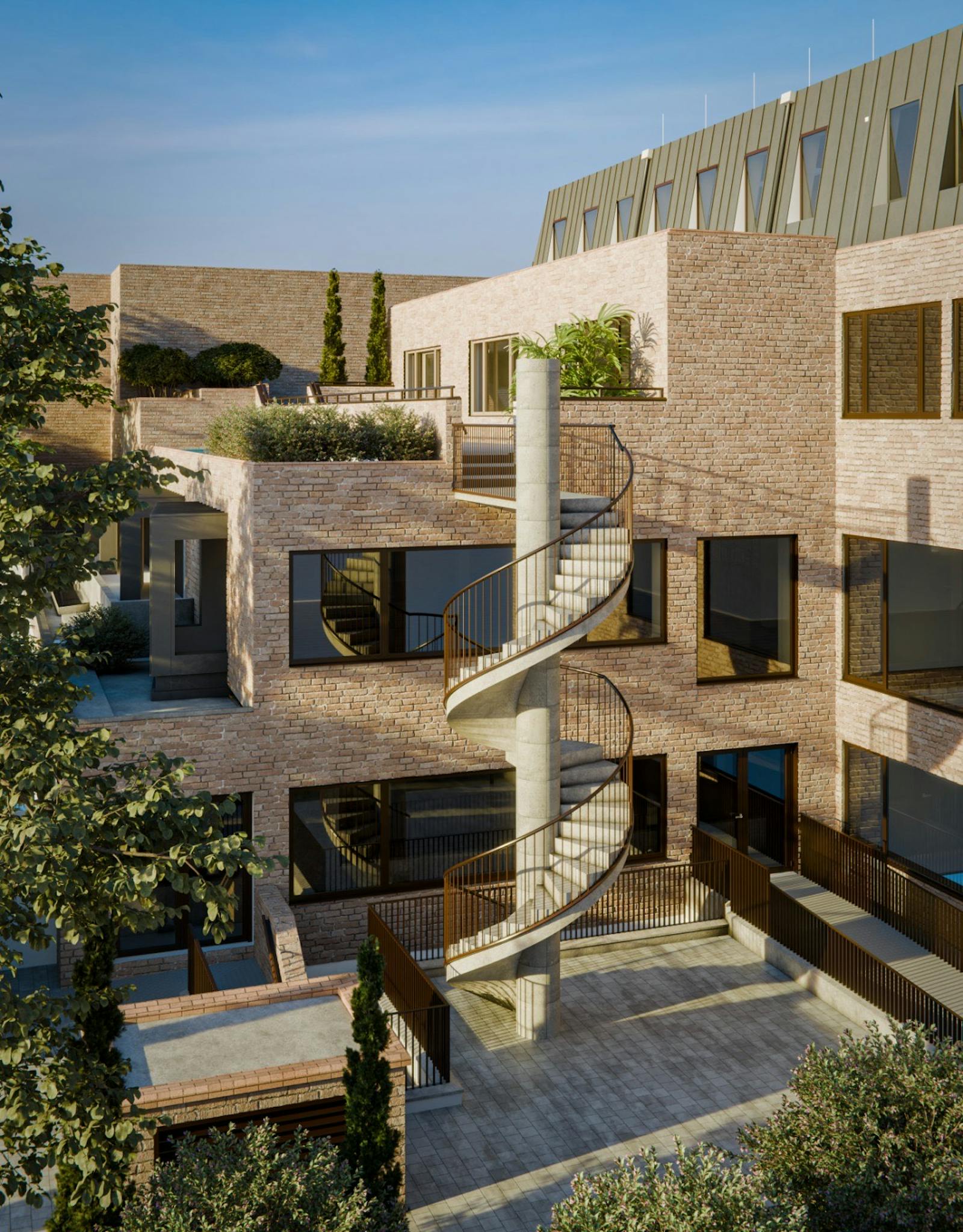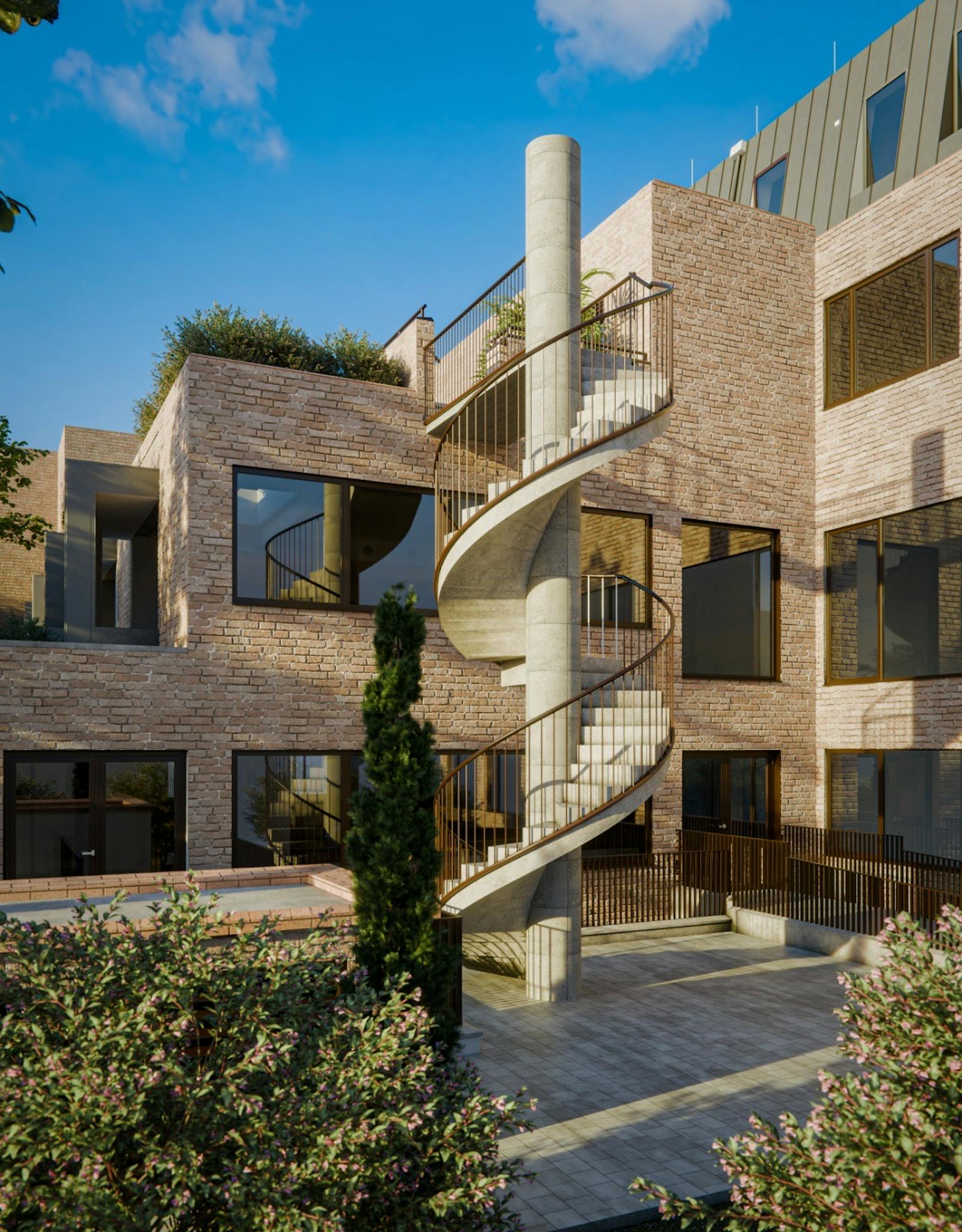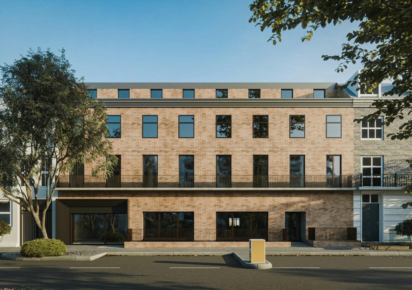 The refurbishment will retain the existing architectural character but introduce subtle contemporary elements to increase energy efficiency and workplace quality. Enlarged windows on the Albert Street façade will improve daylight penetration, while materials such as brick and glass will ensure visual consistency with the original design and surrounding buildings. Overall, the project aims to transform an outdated office building into a sustainable and adaptable workplace environment without compromising its architectural integrity.