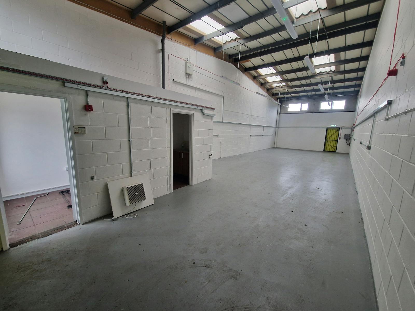 The subject premises is a corner terrace industrial unit of steel portal frame construction under a pitched roof with roof lighting. The unit benefits from having a 2.51(w)m x 3.84(h)m loading door, small office, w.c. with wash hand basin & tea point.