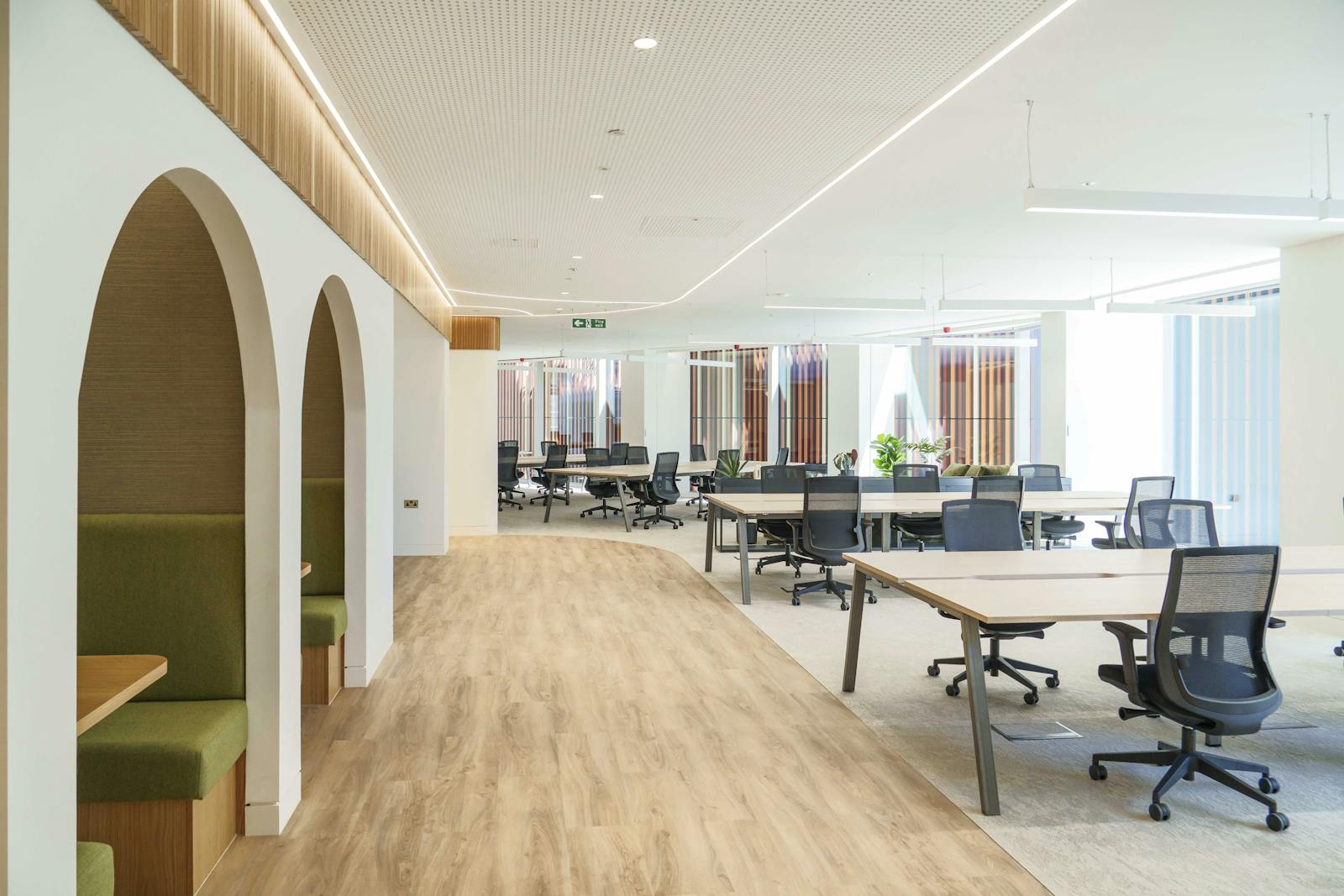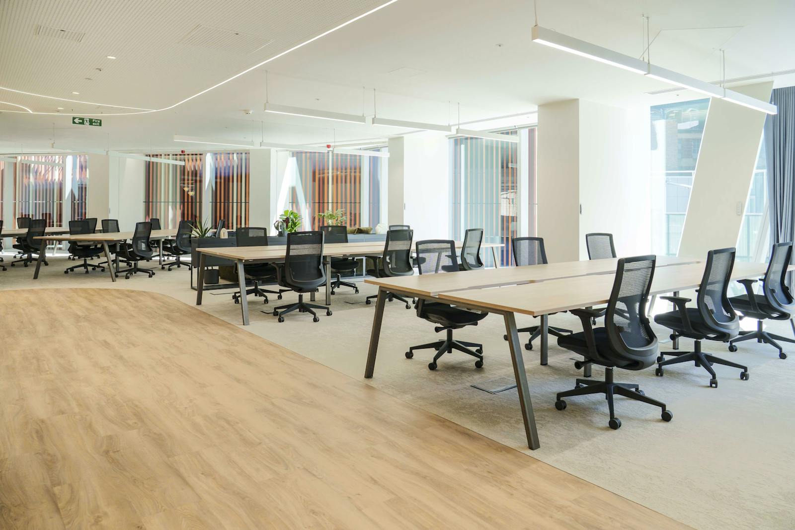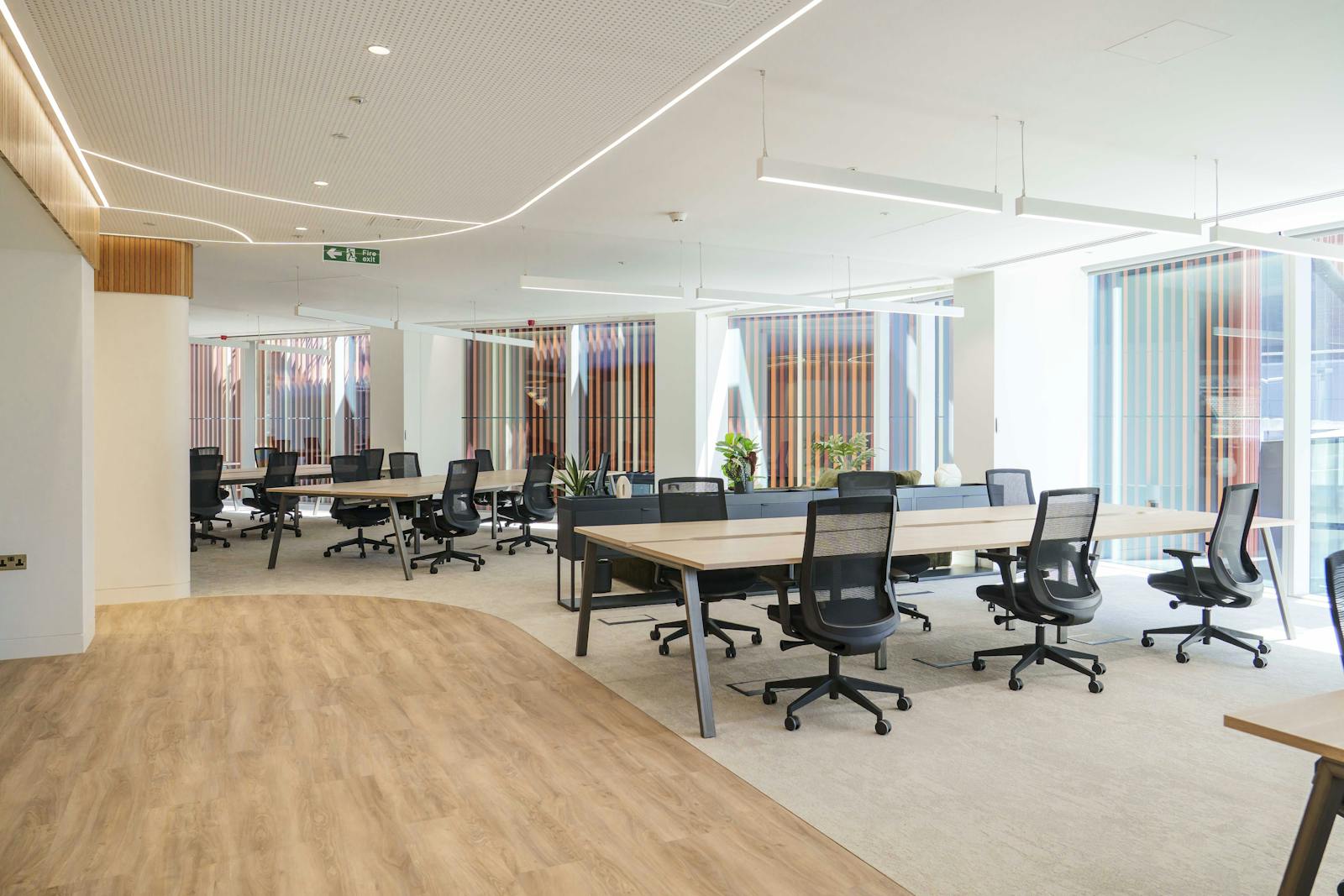 This fully fitted self-contained workspace benefits from high quality contemporary finishes throughout, excellent natural light with the space filled with furniture from local designers. The open plan work stations, meeting rooms and break out areas make this a truly desirable space.