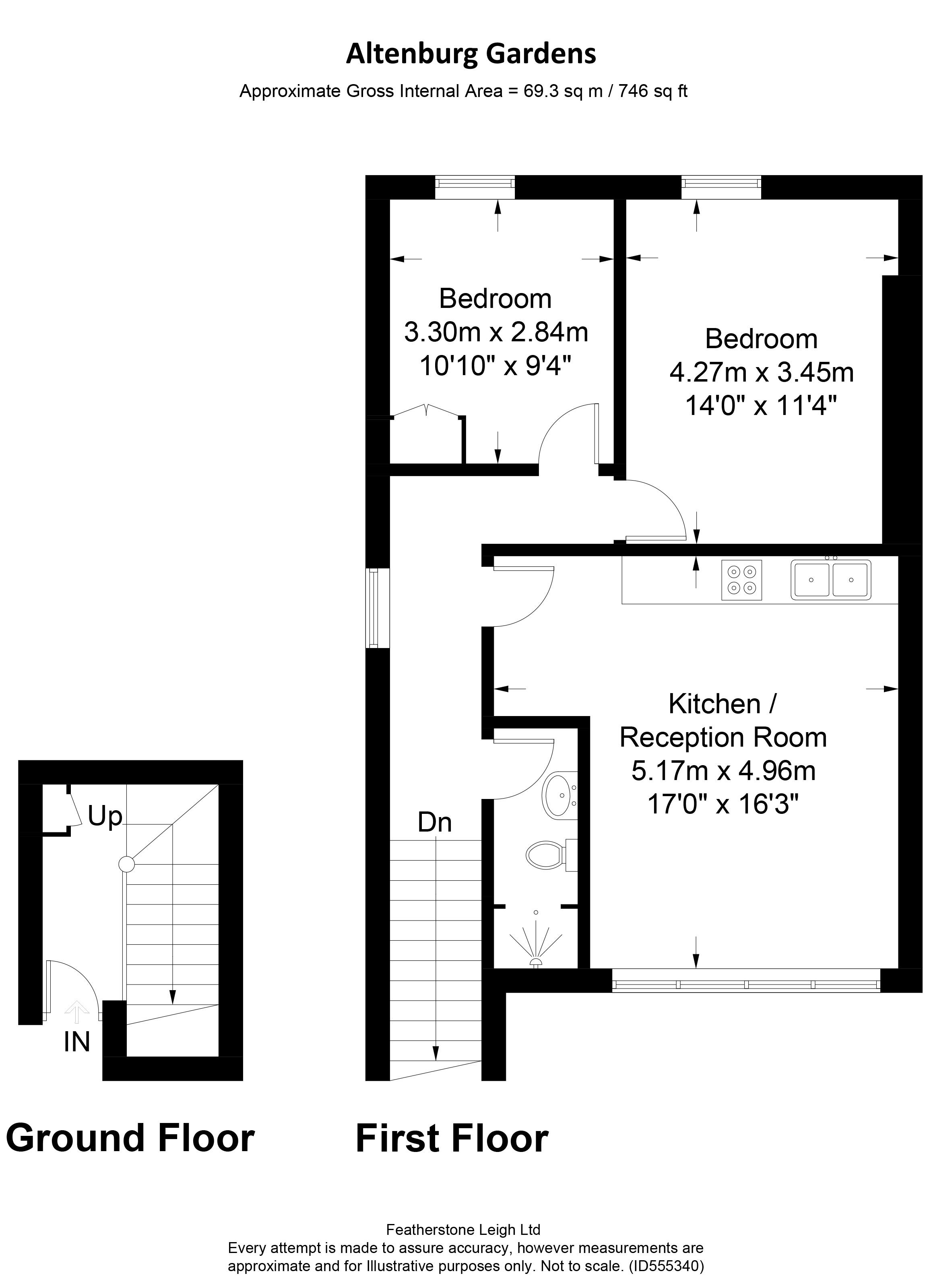 The 3x2 bedroom residential flats were modernised to a high standard in 2020 and are accessed via a staircase directly from Altenburg Gardens.