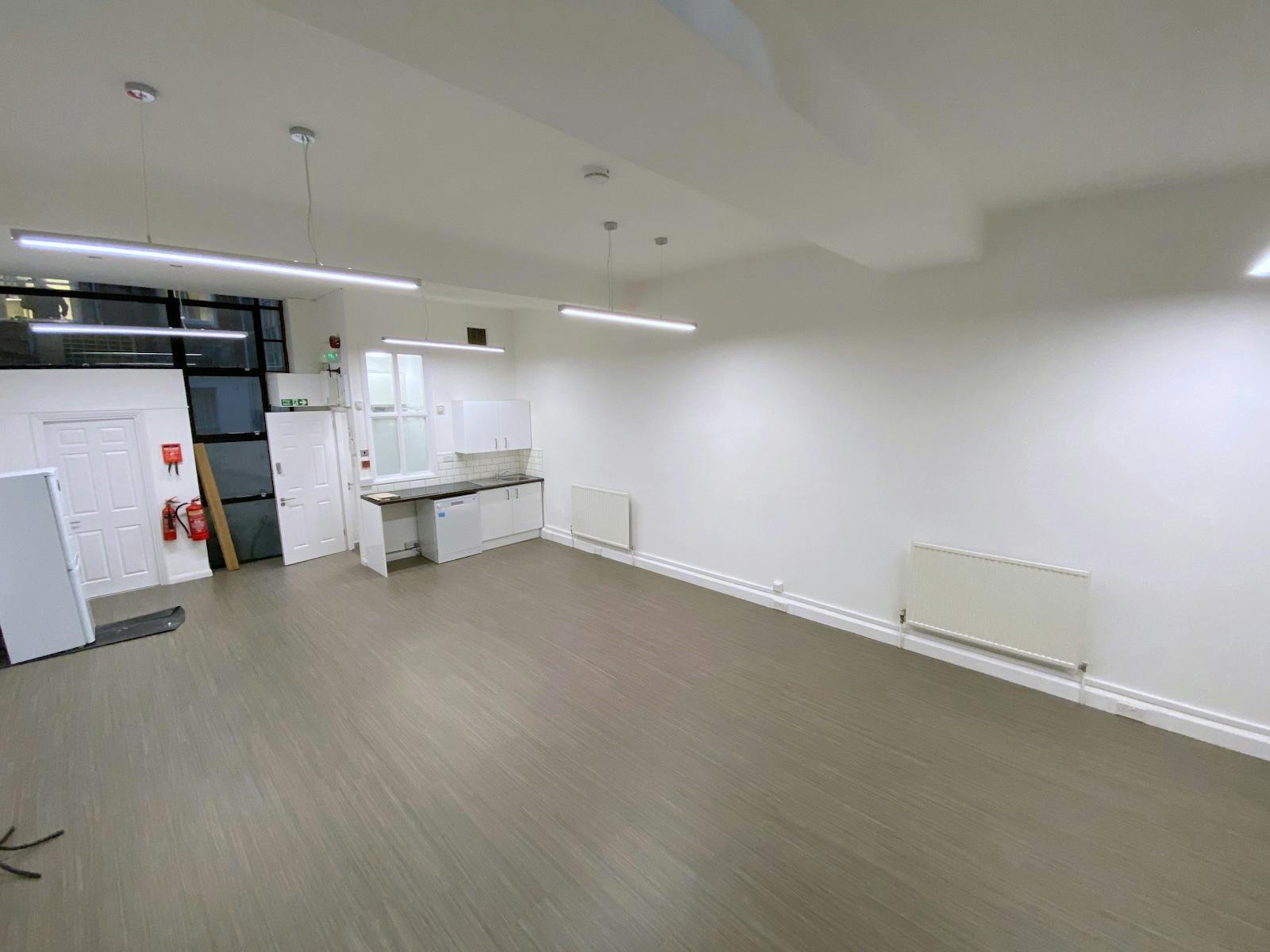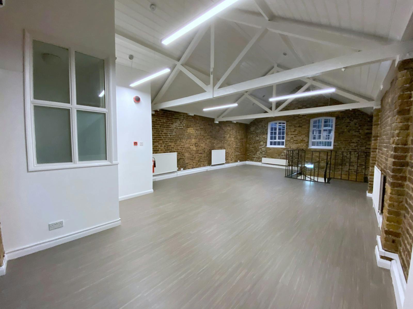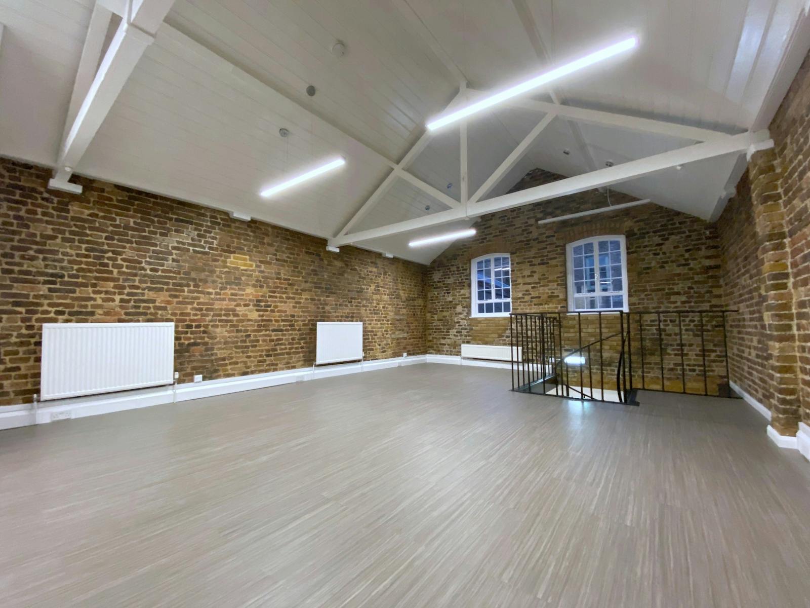 Situated at the rear of a period building, this self-contained office premises offers a striking blend of original character and contemporary workspace design across ground and first floor open-plan accommodation, where wood-laminate and carpeted flooring sits beneath exposed wooden beams and alongside warm brick walls — creating an inspiring environment that feels both distinctive and genuinely practical, making it ideally suited to a wide range of occupiers, from technology companies and creative agencies to design studios and professional services firms.