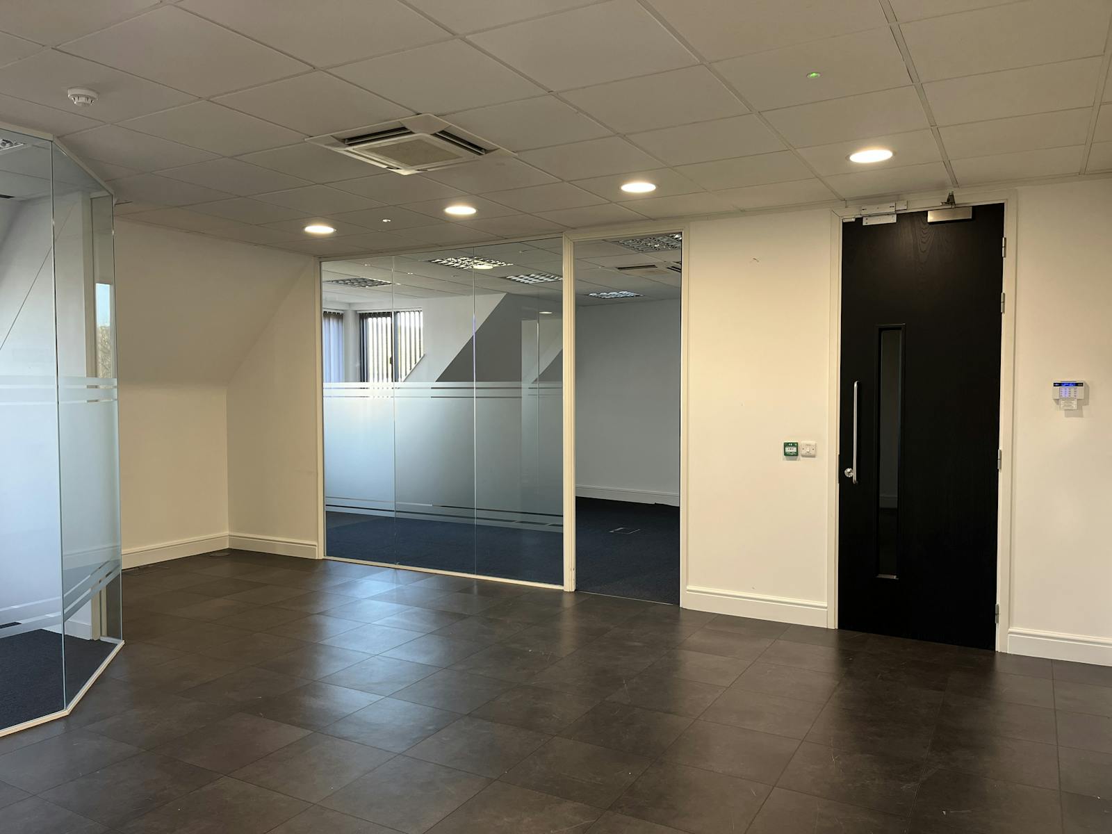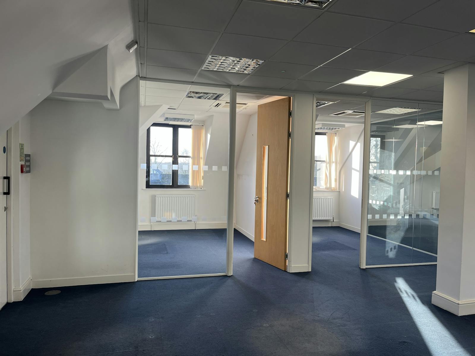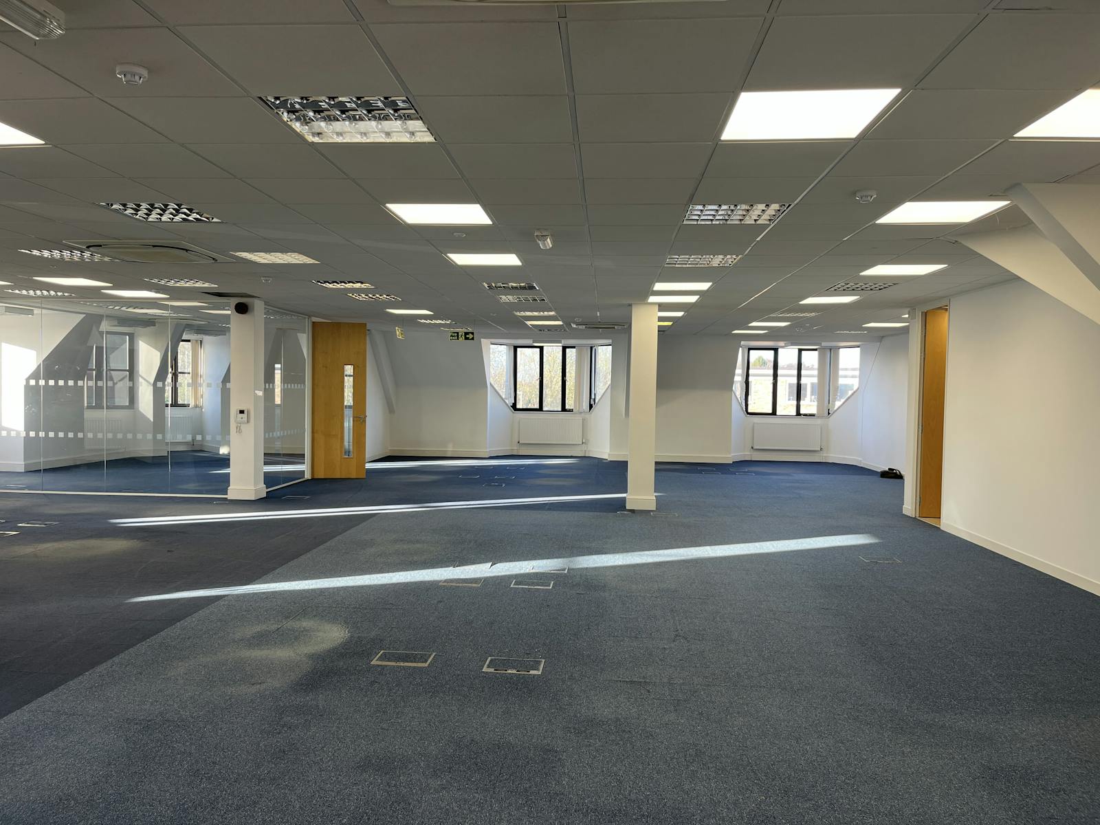 The available accommodation comprises the entire second floor, the building is secure with a coded door entry system. The office suite benefits from a range of meeting rooms and private offices with a large open plan area, large kitchen and reception area. The main office provides predominantly open plan office, with a number of individual offices. It has the benefit of raised floors, air-conditioning, carpets and a kitchen/breakout room.