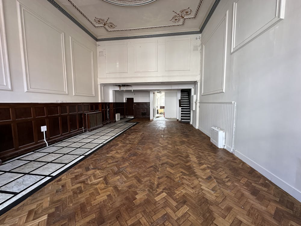 A former bank premises approached via an imposing entrance leading into the former hall where features include high ceilings, ceiling artwork, wood panelling & impressive windows. Further space is located at basement & 1st floor levels where male & female WC's are located.