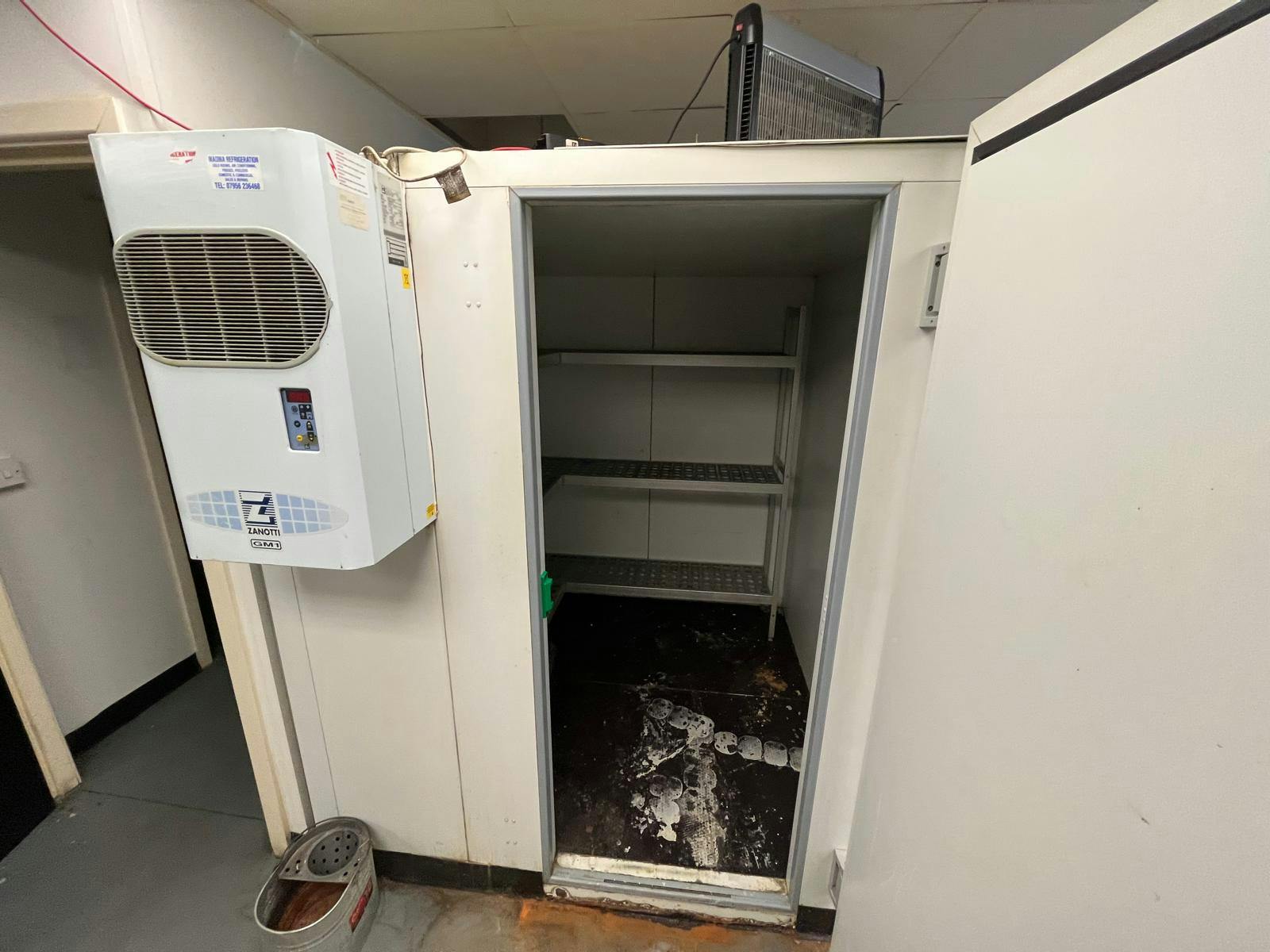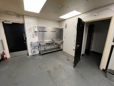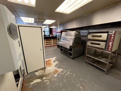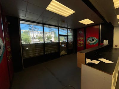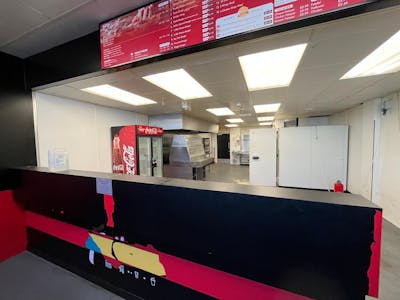 Previously operated as a hot food takeaway, this 797 sq ft unit falls under Sui Generis use and is ready for immediate occupation. The fit-out includes serving counters, extraction systems, ovens, staff WC, and a walk-in fridge, ideal for those looking to continue food-led operations. A roller shutter provides secure frontage outside trading hours.