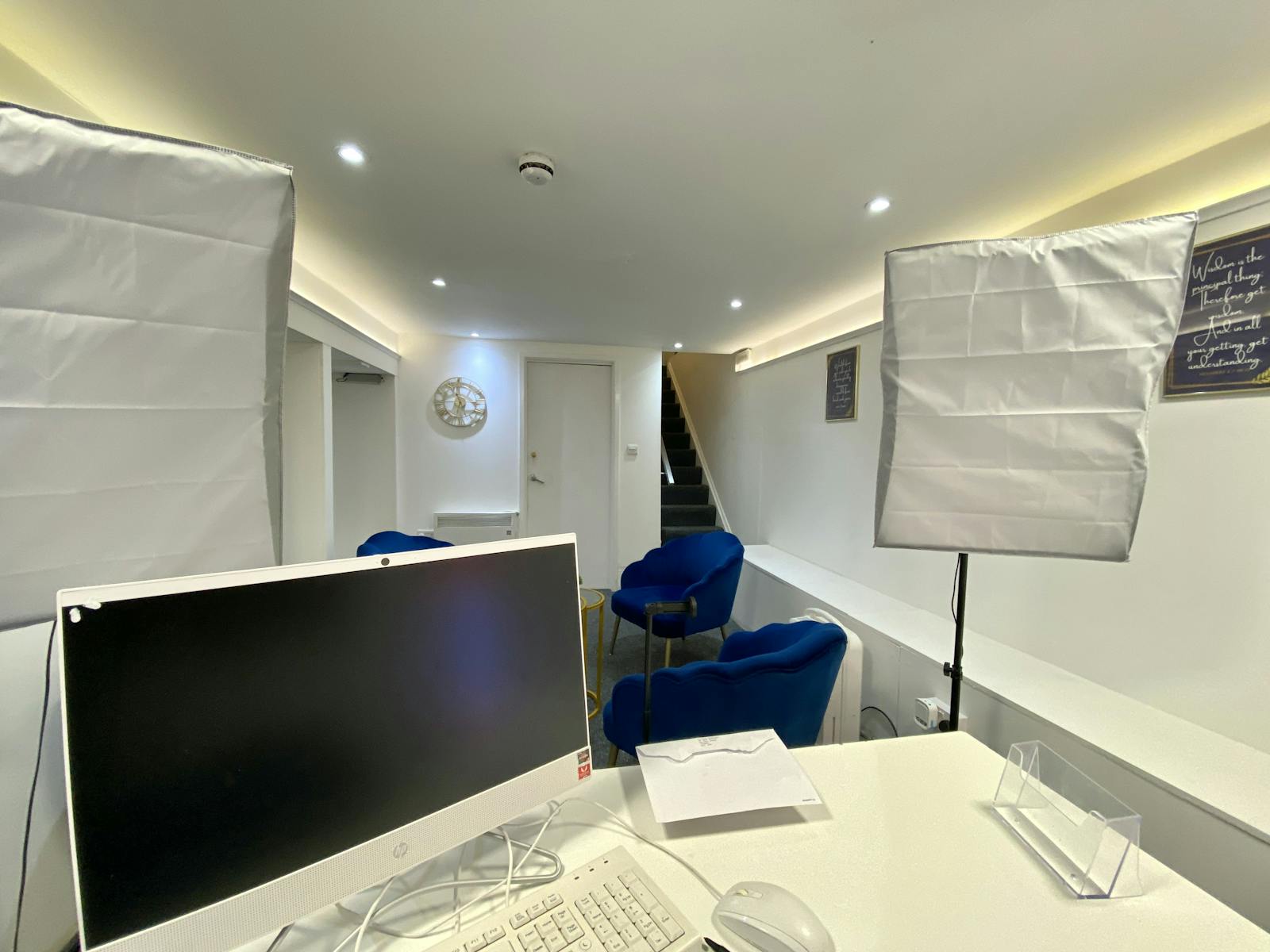 Mid terraced, pavement lined shop/office with large basement and pay and display parking nearby.
