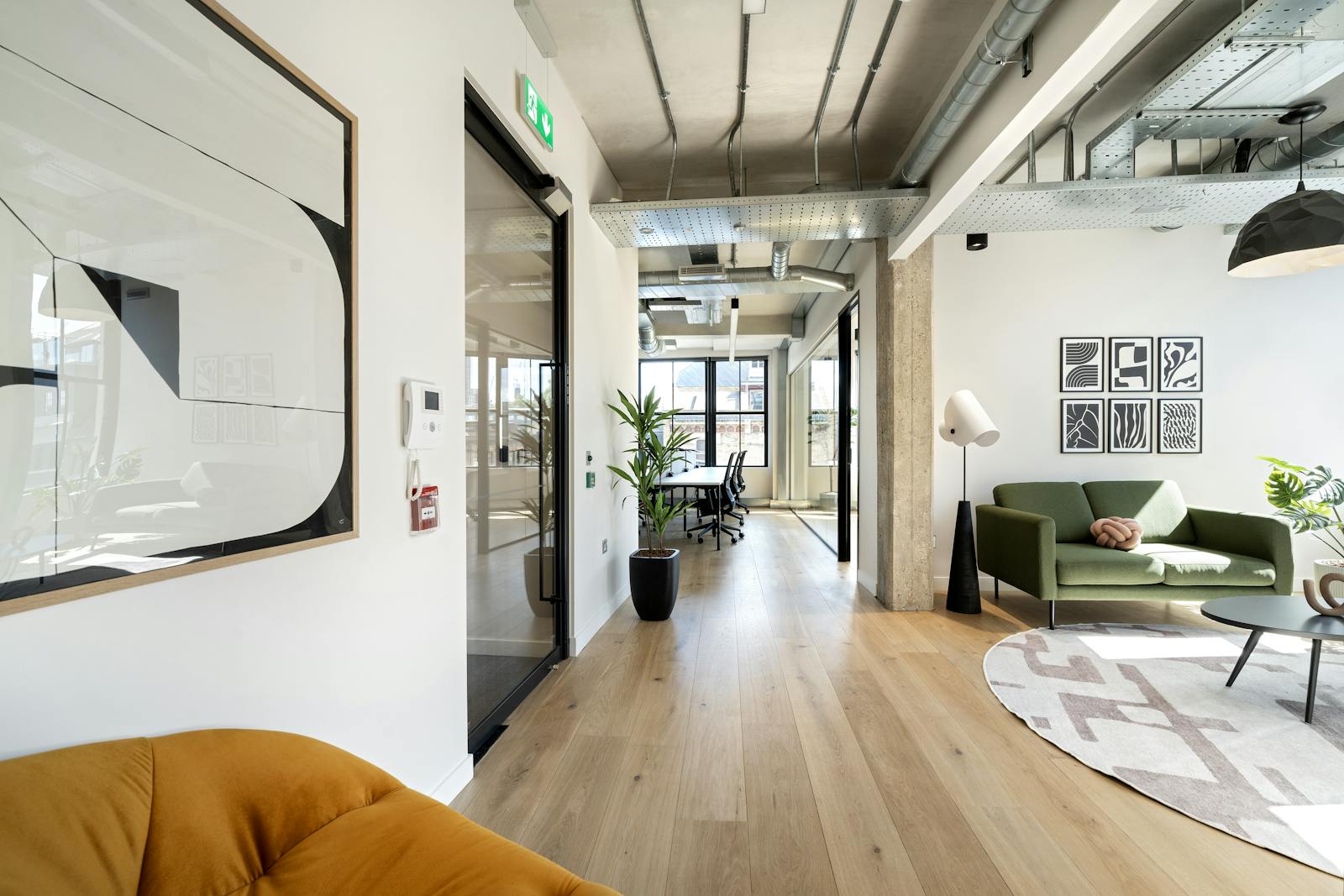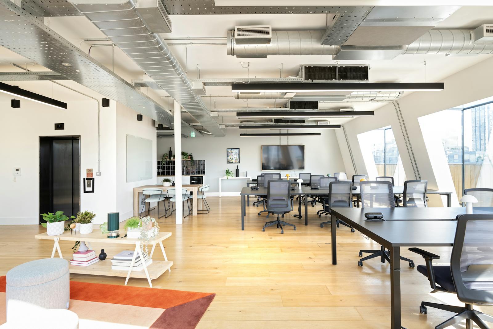 80 Clerkenwell Road is a characterful former warehouse on a prominent Clerkenwell corner at Clerkenwell Road and St John Street. The second and third floors have recently been refurbished to a high standard and come fully fitted, providing 18 desks, 2 meeting rooms, 3 phone booths, and generous breakout areas.
