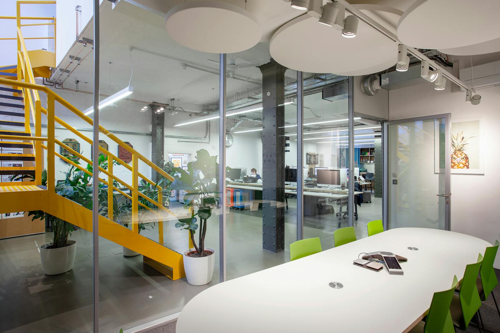 The flexible use unit occupies the ground and lower ground floors of an architect-led renovated period building. The raised ground floor is mainly open plan and full of character with excellent floor to ceiling height, an abundance of natural light front and back and reclaimed herringbone wood floor throughout. There is also a separated small tea-point and single W.C. The bright lower ground floor space offers adaptable accommodation with with natural lighting, accessible from an internal open stairs also giving access to the main meeting room that can host 10+ people seated. The space also benefits a high spec fitted kitchen with dining area and additional break out areas, and two further private W.C.s. There is a further space currently configured as a fully air-conditioned server storage room and a separate sound-attenuated box room (currently storage, formerly used as a podcast studio).There is access to secure shared bike storage and also to a communal roof terrace.