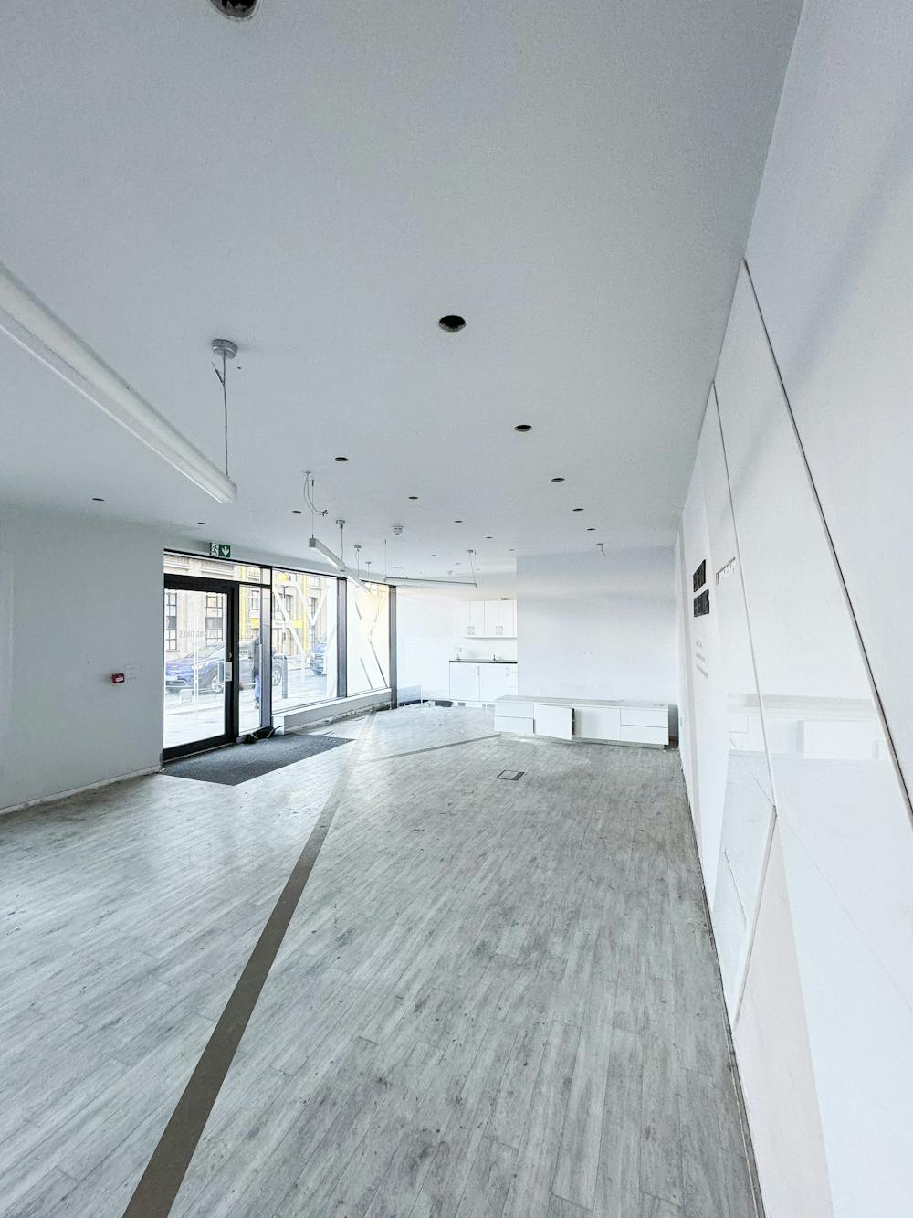 Contemporary finishes, including recessed lighting, timber-effect flooring, and fitted storage units. Direct street-level access, ideal for customer-facing uses
