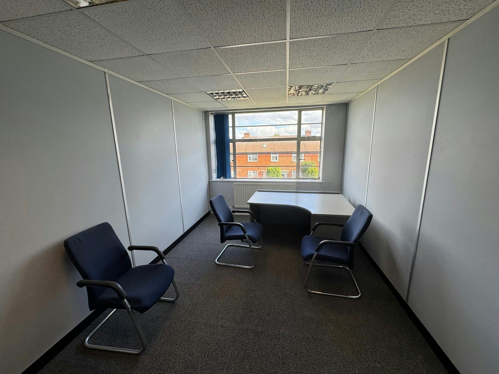 The front first floor offices comprise a hallway leading onto four partitioned offices and two WC's/Washrooms on the first floor landing area.