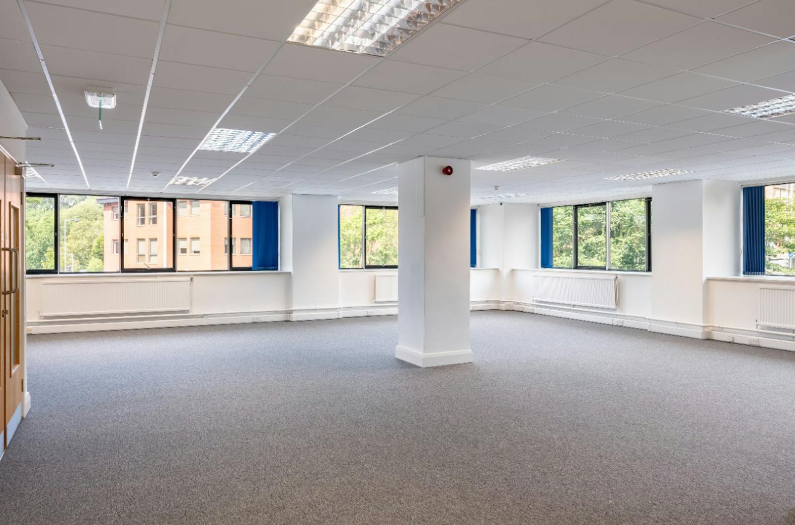 Dale House is a landmark nine-storey office building in the heart of Stockport town centre, offering high-quality, flexible workspace following a comprehensive refurbishment. The building features an impressive main entrance and remodelled reception, creating a modern and professional first impression. The offices are served by two passenger lifts and refurbished common areas, with suites available on either an all-inclusive, fully fitted basis or on new lease terms. Ground floor suites (1.5 to 1.12) are available on flexible licenses and come fully furnished with 3–6 desks, while larger floors can be leased as open-plan offices from approximately £11 per sq ft plus a service charge of £6.90 per sq ft.