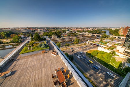 The successful project Diamond Point offers in total 19,152 sq m of prime office and 627 sq. m of retail space. The exterior and interior are of the highest architectural and technical standards when both receptions are designed by world famous architect Bořek Šípek. The tenants enjoy terraces which provide a unique panoramic view of Prague castle, Vltava and Štvanice island. Directly in the building there is a stylish cafe and restaurant. There is also a possibility for a tenant to place his logo on the facade, a great place to be seen with a 30 000 cars going by per day!