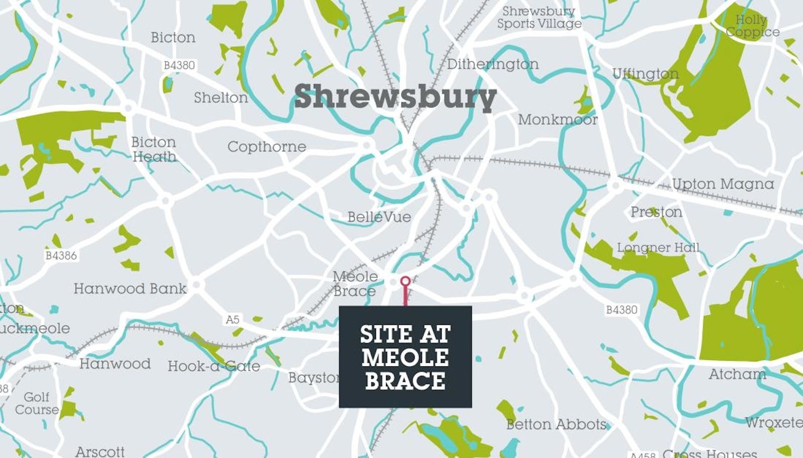 The site is located 2.1km (1.3 miles) to the south of Shrewsbury Town Centre and is accessed from Hereford Road (A5112) which leads into Shrewsbury Town Centre to the north or the A5 and A49 to the South.