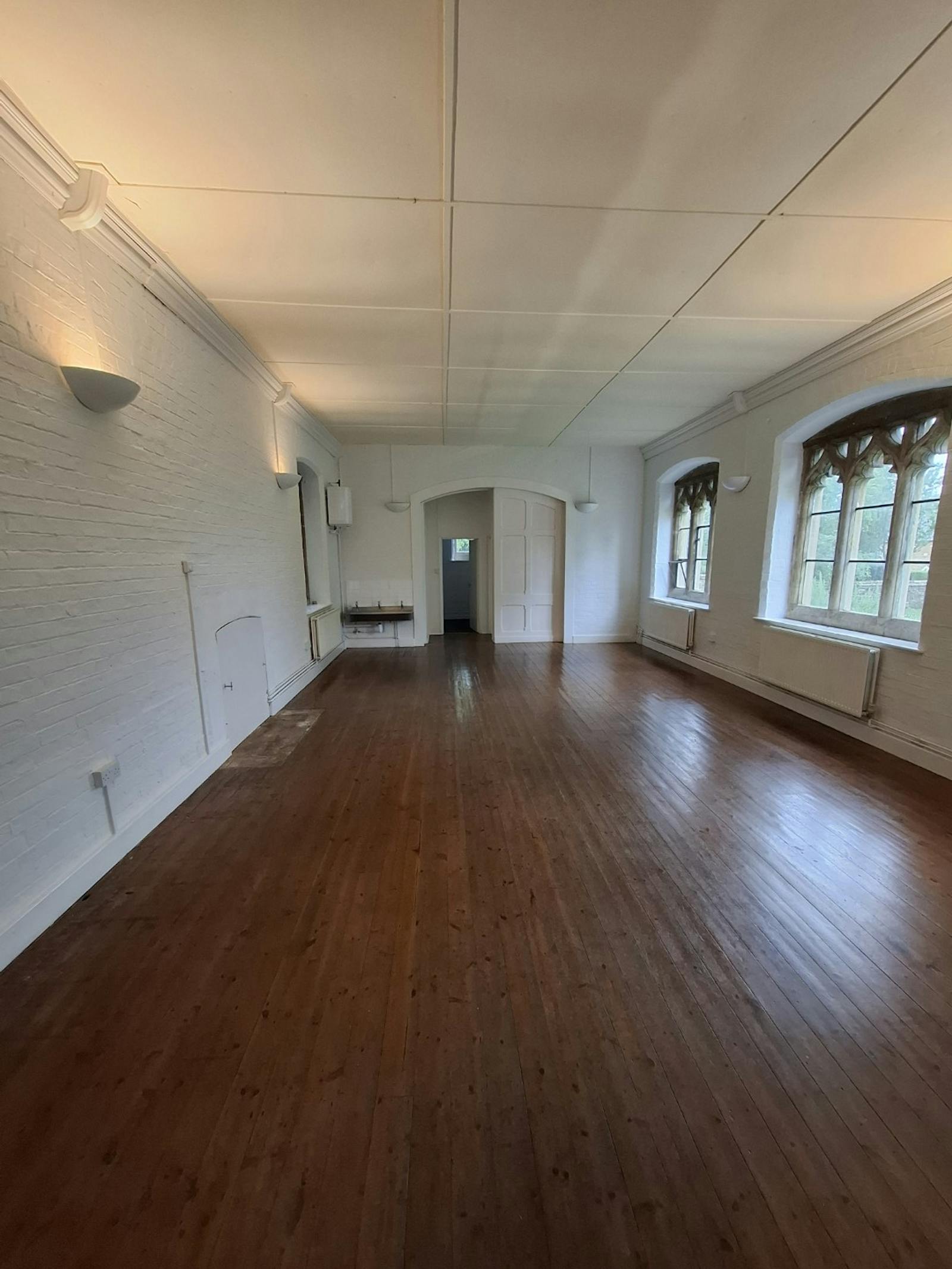 The building's generous open-plan layout is enhanced by original period features, offering both character and flexibility. High ceilings and natural light create an uplifting environment well-suited to mindful practices, group learning, workshops, or artistic pursuits.
