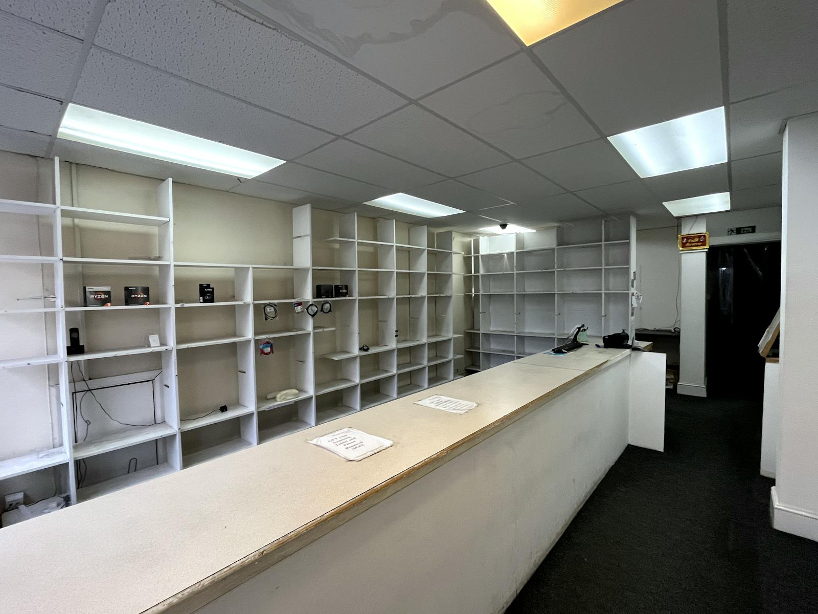The subject property provides a retail sales area with glazed frontage and electric roller shutter doors with space suitable for storage or office accommodation and WC facilities to the rear.