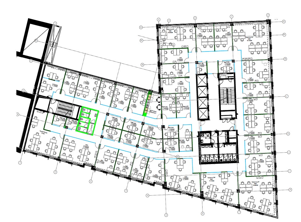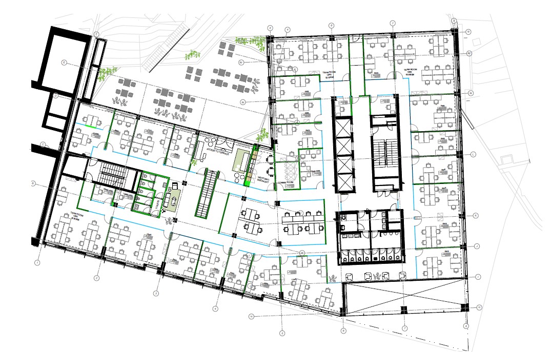 Eco-friendly LEED Gold building, ceiling cooling, openable windows for fresh airflow