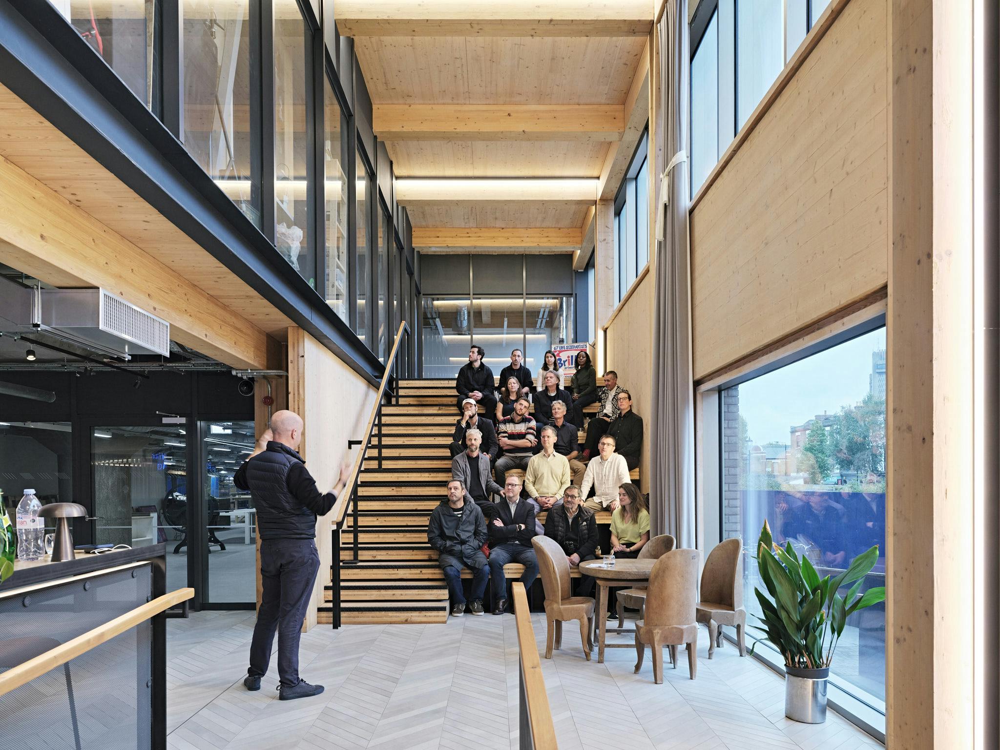 Designed with sustainability at its core as a reimagined heritage building, it holds a coveted BREEAM certification and was awarded the NLA Environmental Prize in 2021. Innovative features include an expressed timber structure that provides a carbon-neutral framework throughout the building’s lifespan.