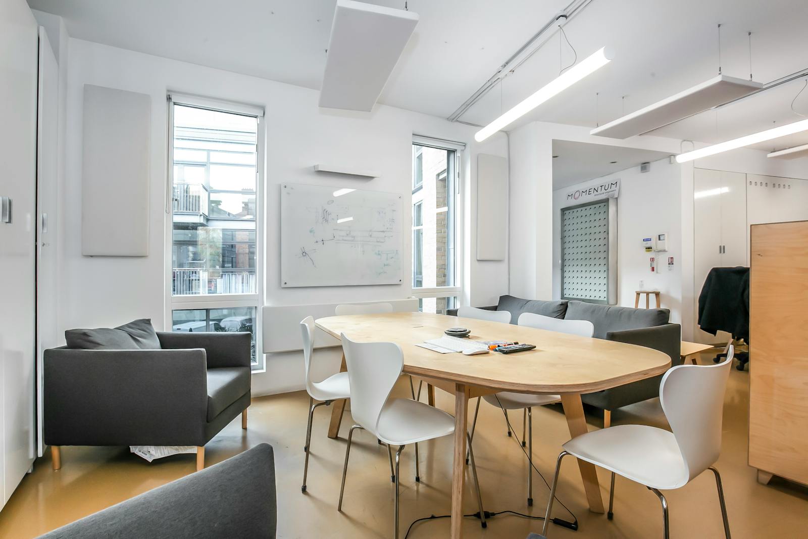 This modern office comprises a self-contained first-floor studio forming part of the popular Timber Yard development on Drysdale Street.