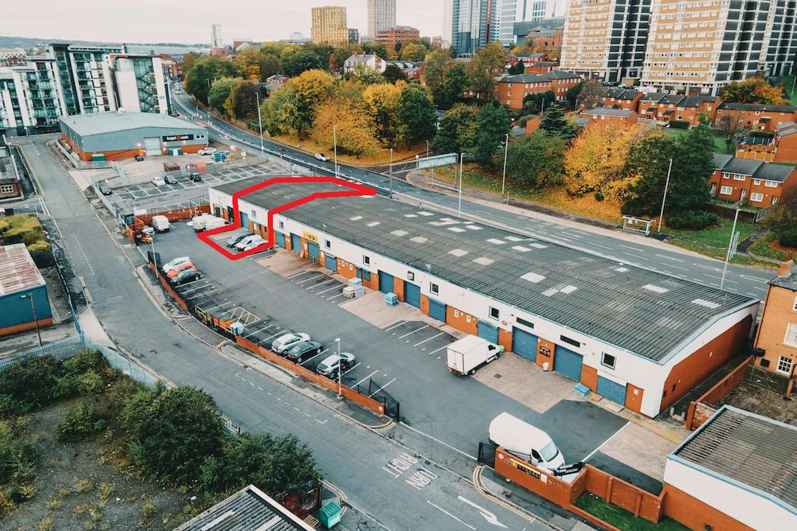 Taverners Walk Industrial Estate is located in Sheepscar, approximately one mile north-east of Leeds city centre. The property is situated on Sheepscar Grove, adjacent to both A61 and A58 roads, providing access to nearby areas such as Chapel Allerton, Harehills, and Roundhay. The M621 is located approximately 2 miles to the south of the estate, providing direct access to the M62 and M1.