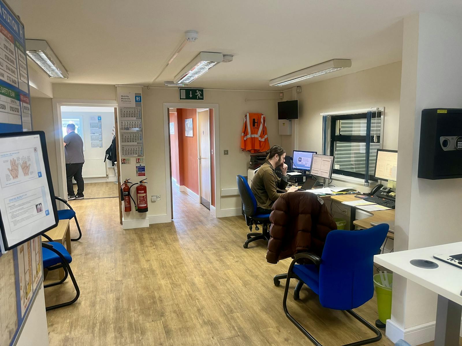 The building is of steel framed construction with brick & block walls, and metal steel sheet cladding. The warehouse has a concrete floor with an electric roller shutter door to the front (3.76m in height & 4.7m in width). The office section is well appointed with reception, offices, kitchenette, mess room, tool room and WC facilities.