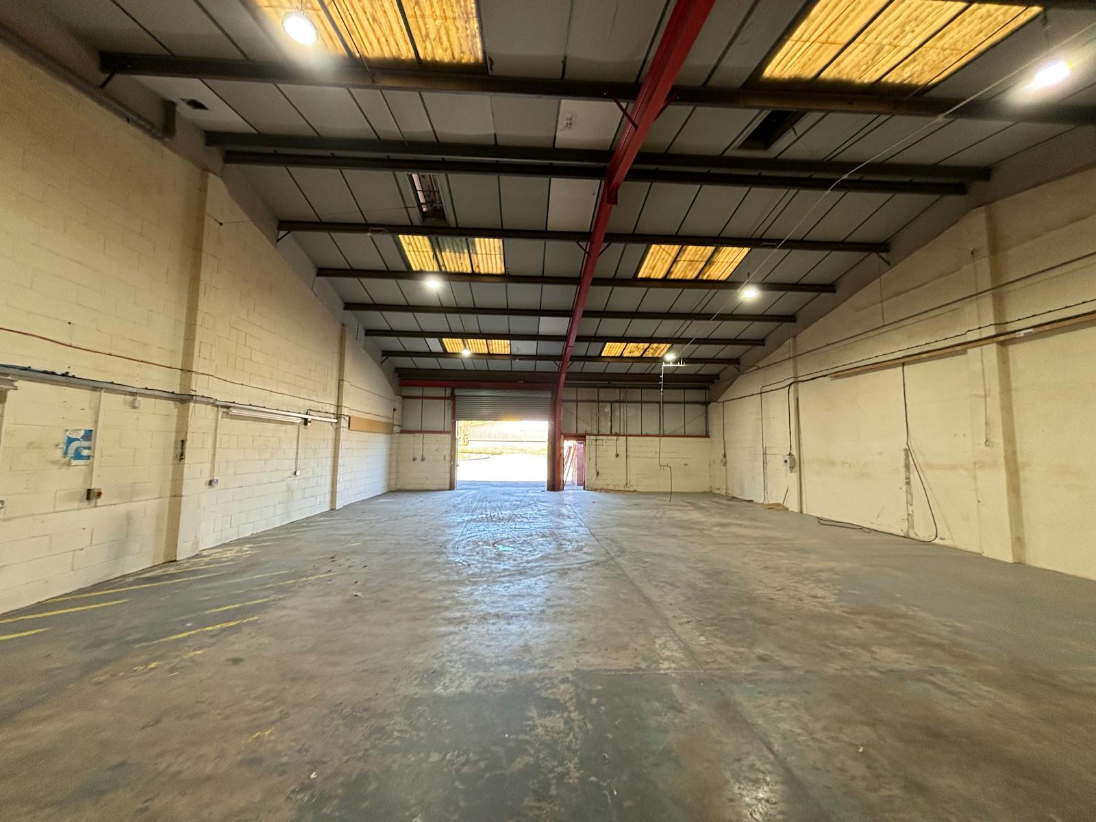 Steel portal frame construction with blockwork / brickwork and profile sheet clad elevations, under a pitched roof.