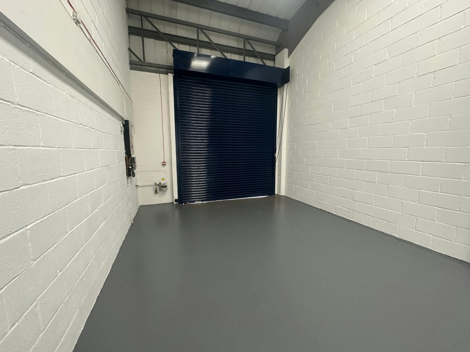 The warehouse has roller shutter door access, lighting, and 3-phase electrics.