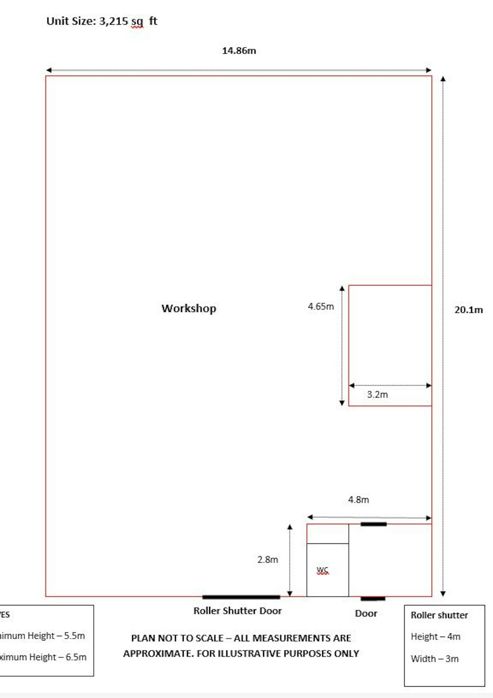 •Roller shutter door Width 3.0 metres, Height 4.0 metres