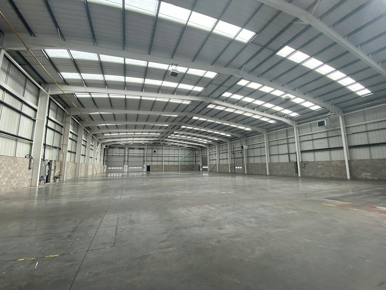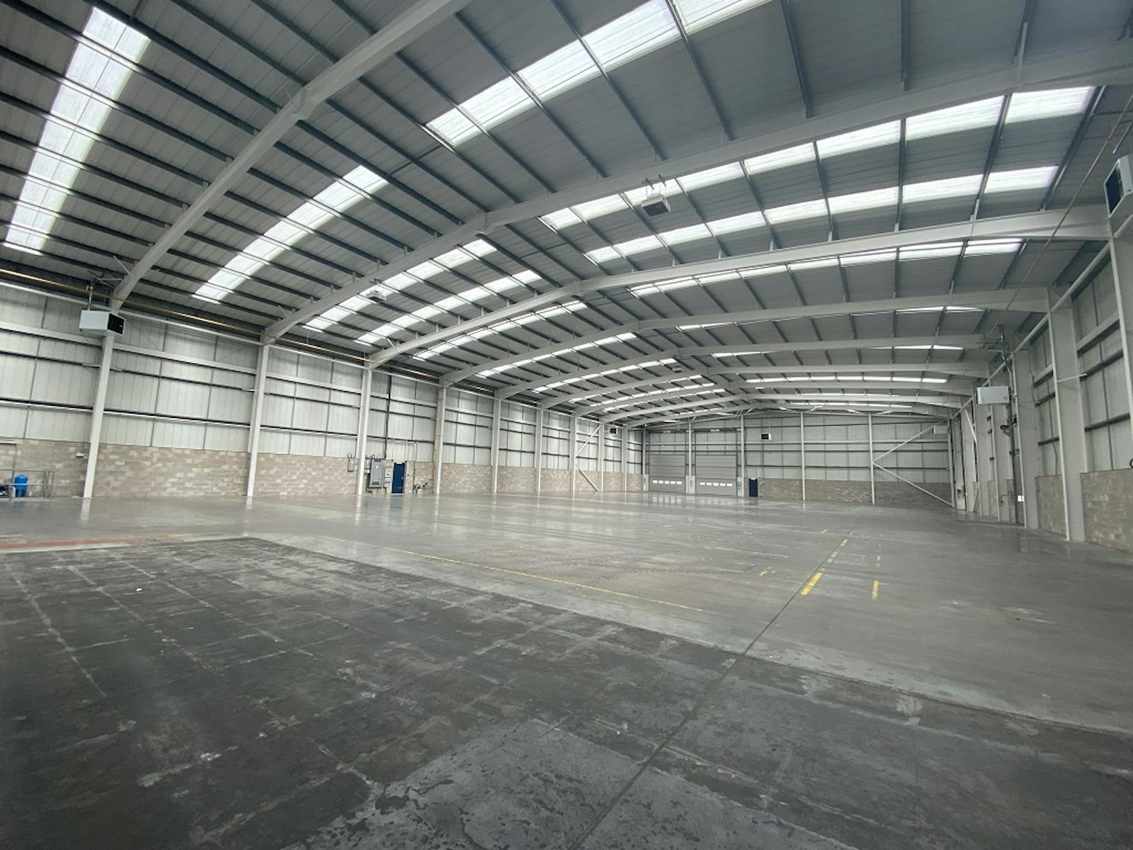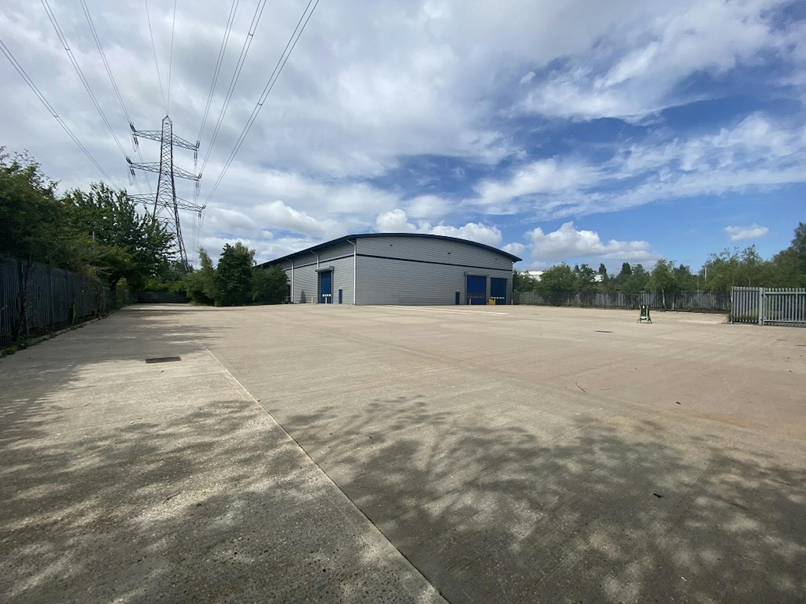 The building comprises a substantial 21,616 sq ft warehouse with an 8.17m eaves height, three level-access loading doors, and a dock-level loading door, supported by a 38m deep secure service yard. Constructed with a steel portal frame, metal-profile cladding and a barrel-vaulted roof, the unit provides robust, flexible space suited to a variety of industrial uses. To the front, 9,238 sq ft of high-quality, two-storey integral offices offer modern accommodation with raised floors, comfort cooling and staff amenities.