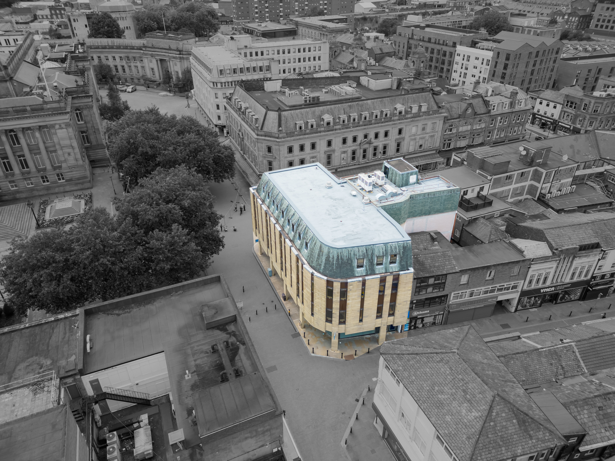 The property is situated within a prime pedestrianised pitch in the heart of Bolton Town Centre. It is strategically positioned between the two main shopping centres of Crompton Place Shopping Centre, to the east and Market Place Shopping Centre, to the north. The property fronts Victoria Square, a busy public realm which sits in front of the Grade II listed Bolton Town Hall and the Albert Halls theatre. The property benefits from two return frontages to Market Street and Oxford Street.