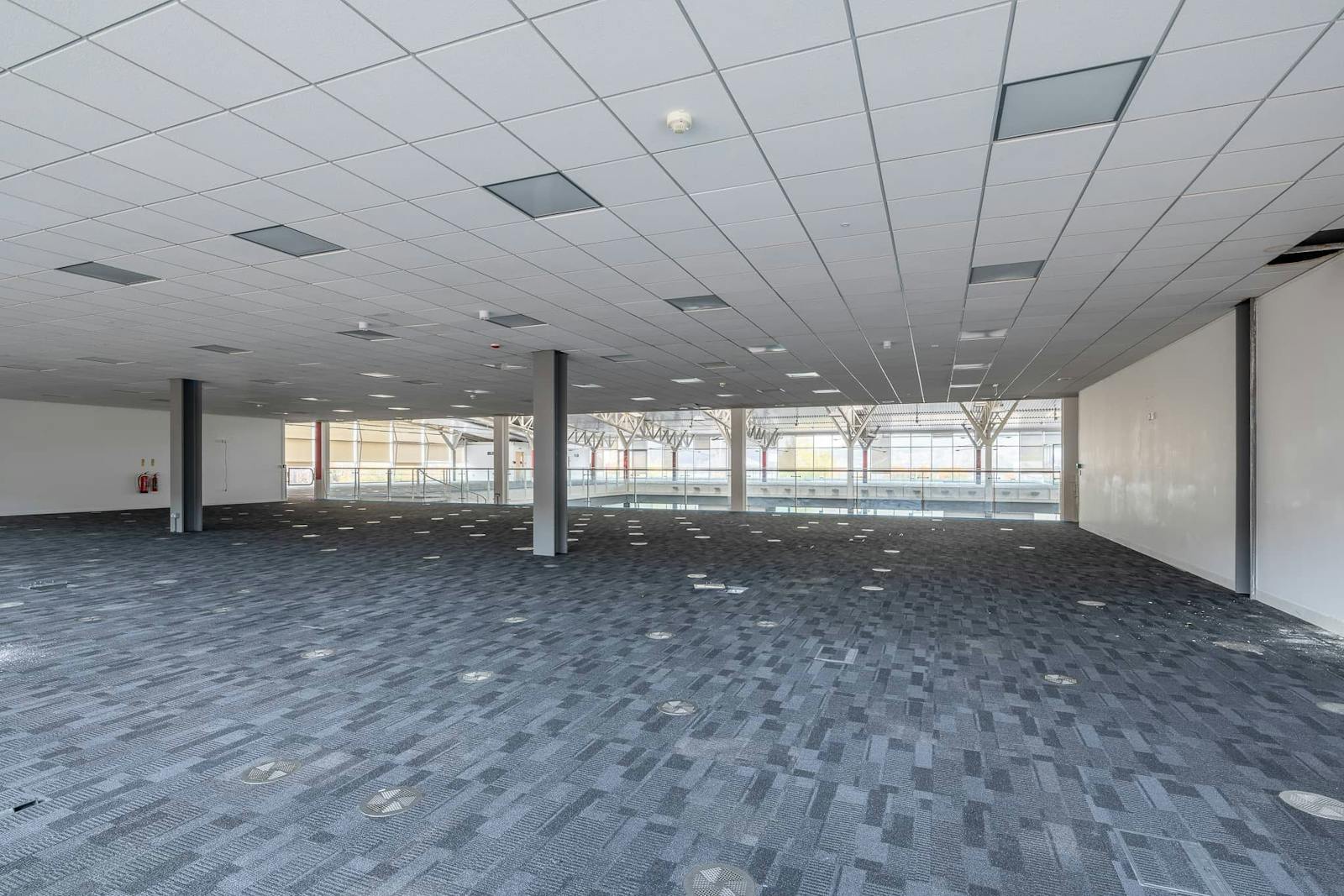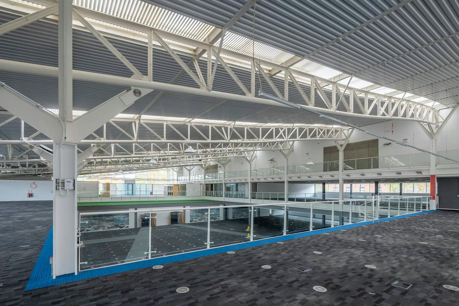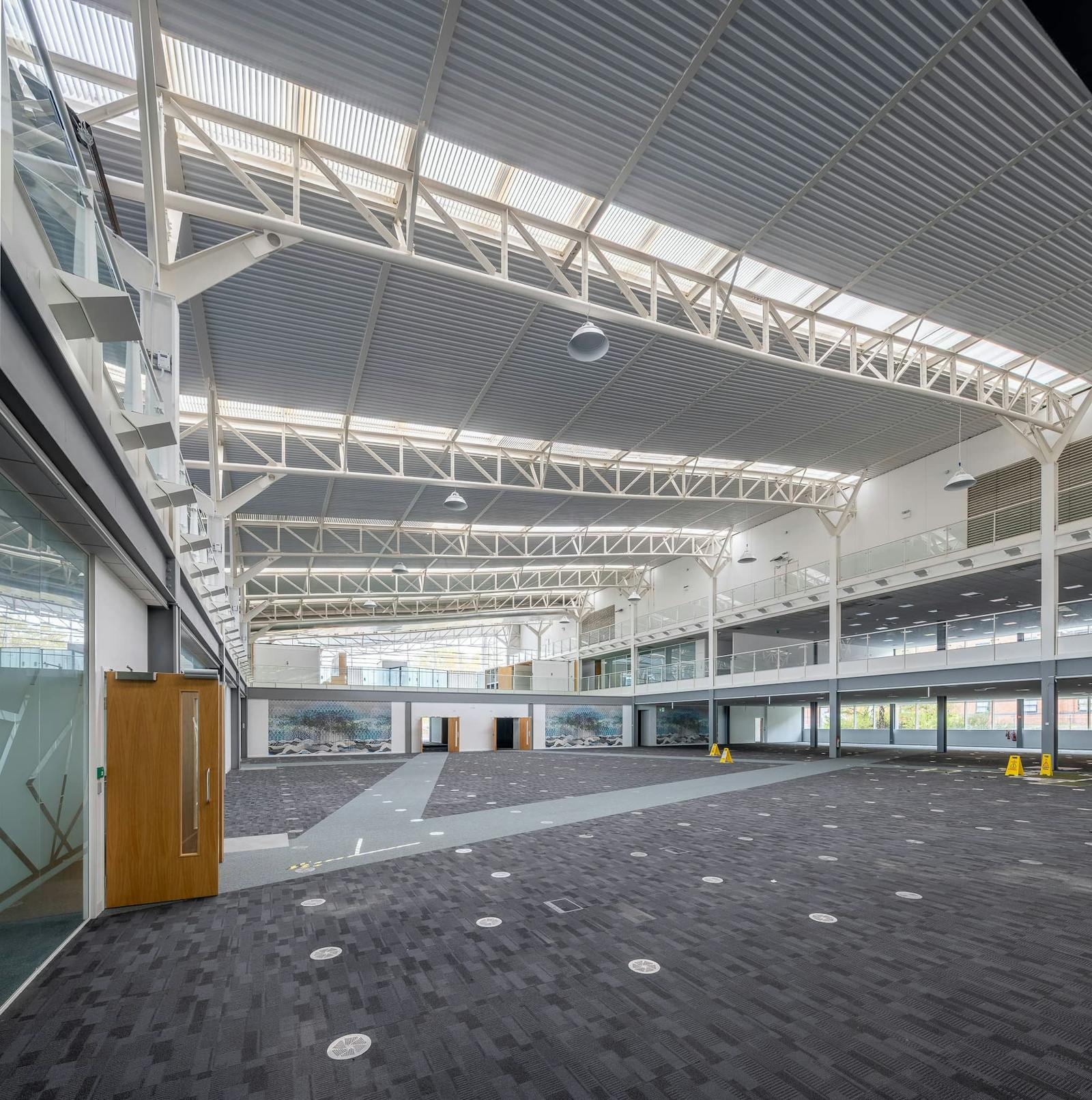 The office element of the site is of steel frame construction, featuring a combination of profiled cladding and glazed façades. Internally, the ground floor accommodates a substantial open-plan workspace designed for flexible layout configurations, the majority of which is double height. Ancillary meeting, breakout and welfare space is provided in The first floor provides additional office accommodation arranged on concrete mezzanines around the building perimeter.
