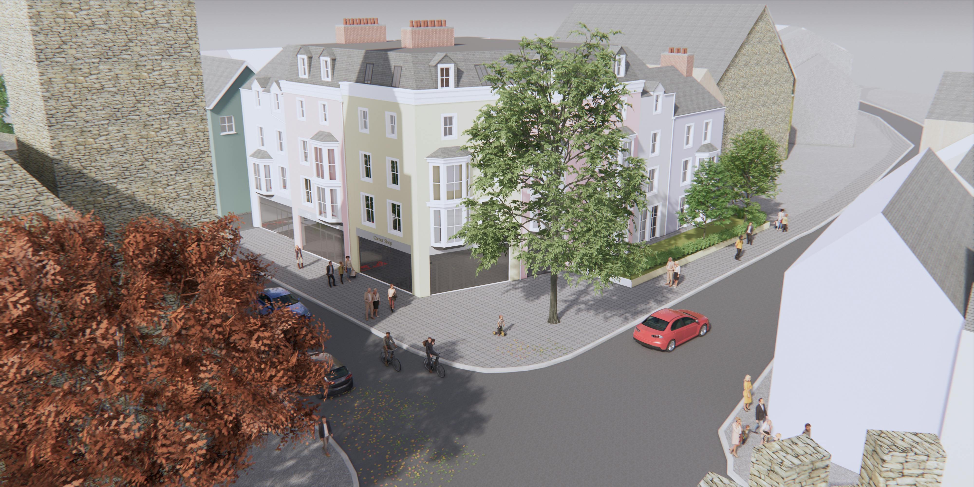 The site is situated in a prime position close to the heart of Tenby town centre, on the corner of Warren Street and South Parade and opposite the junction of White Lion Street and South Parade.