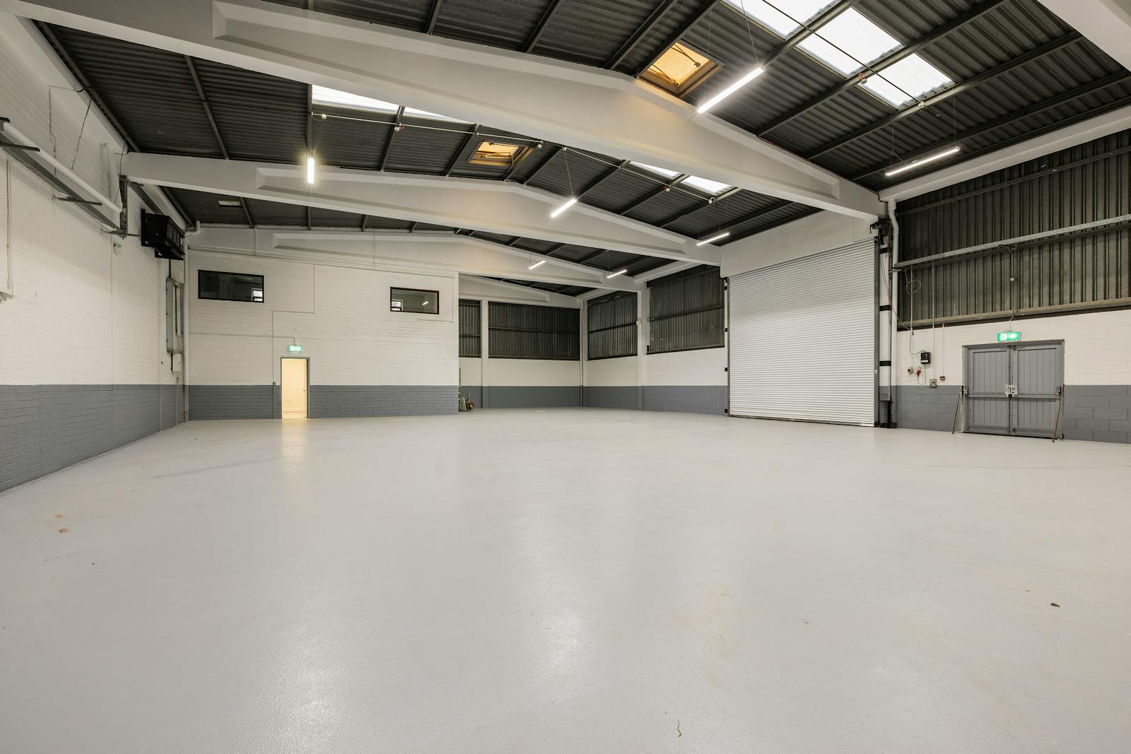 The warehouse is accessed via 2 x full-height roller shutter doors.