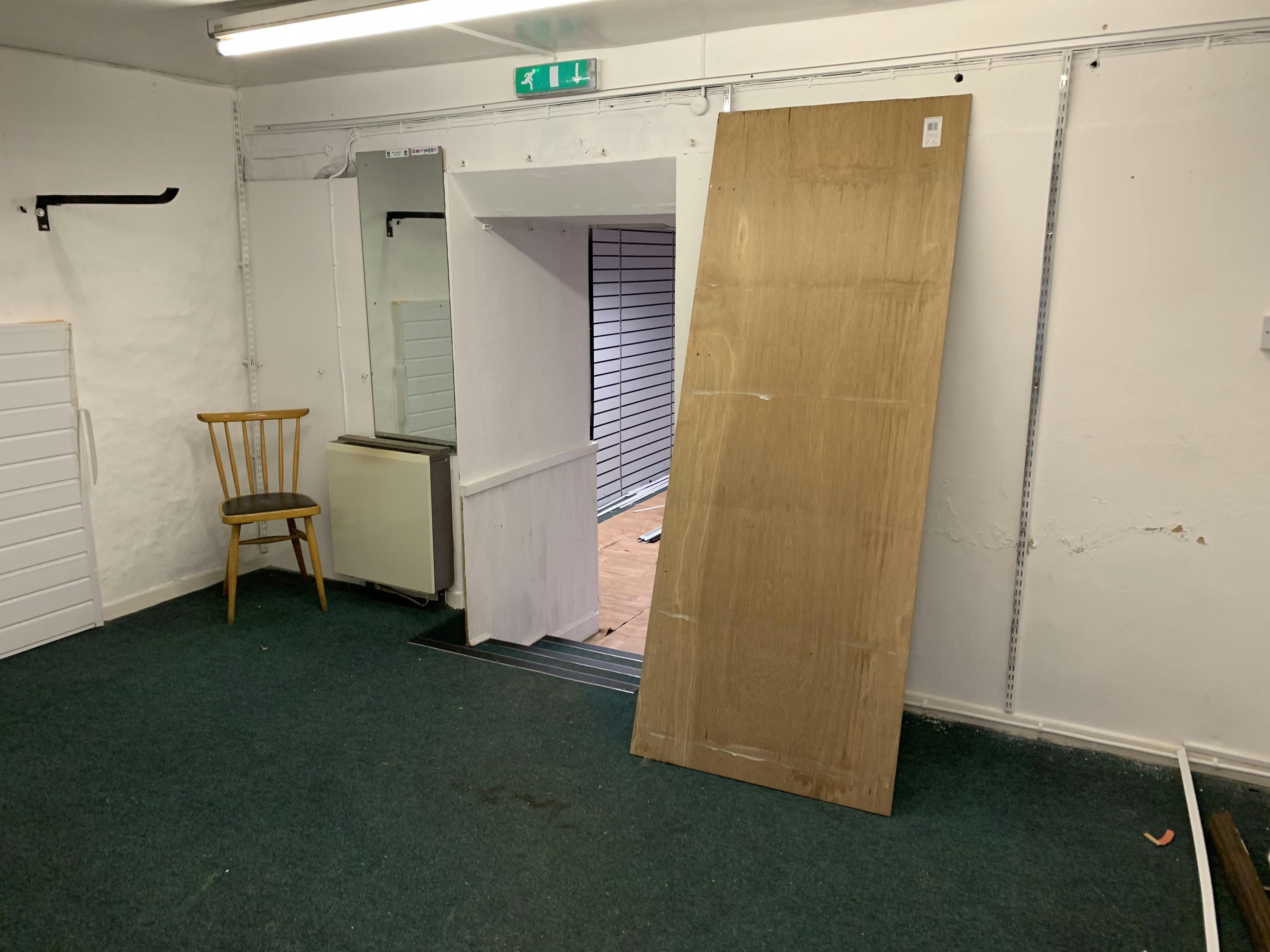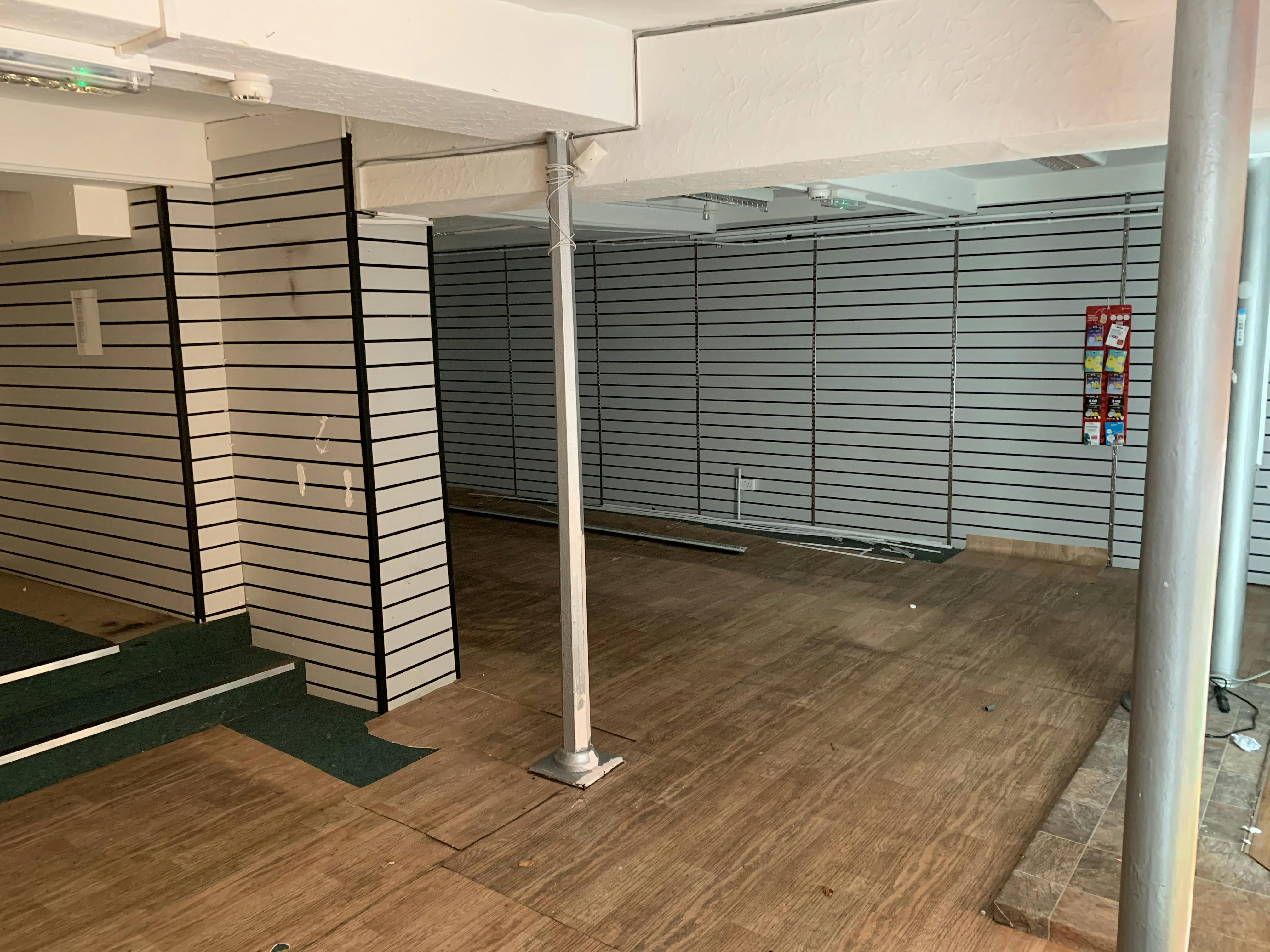 The property is arranged to provide a sales area, stores and toilet.