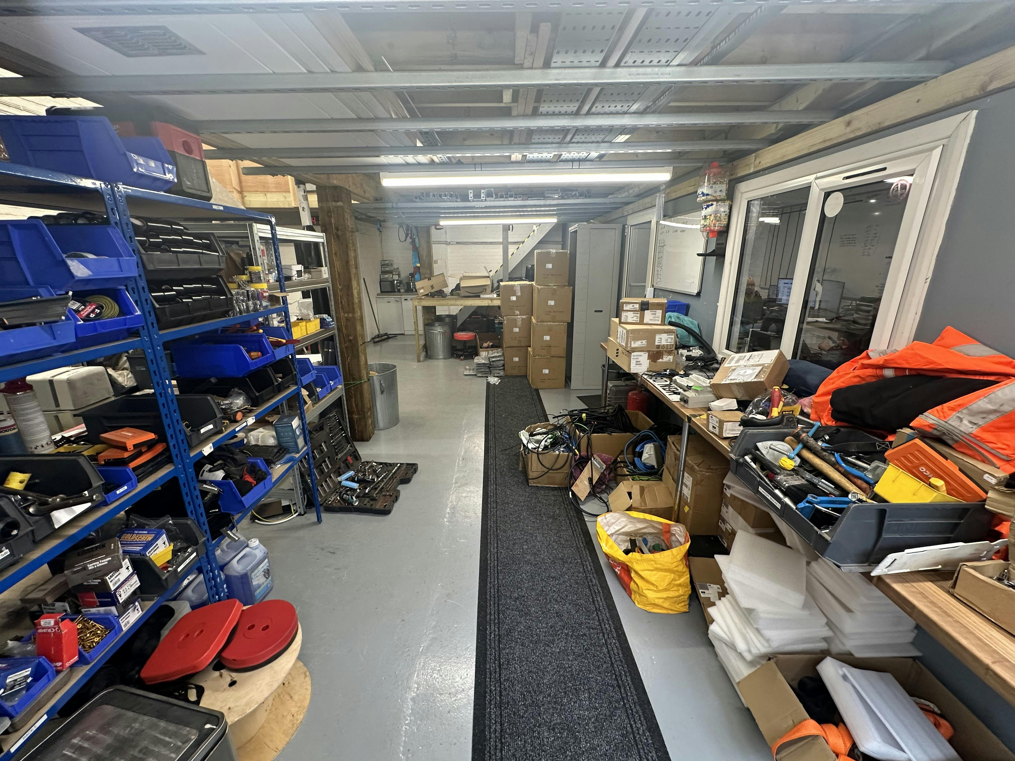 The property comprises an industrial unit forming part of an estate of 15 units, composed of a steel portal frame construction with brick and plastic coated steel clad walls under a coated steel clad roof with roof lights. This unit is currently configured to provide industrial space to the ground floor, as well as a partitioned office space with a WC and a mezzanine storage space on the first floor. The unit benefits from a roller shutter door (3m x 3m), 3 phase power and parking/loading area.