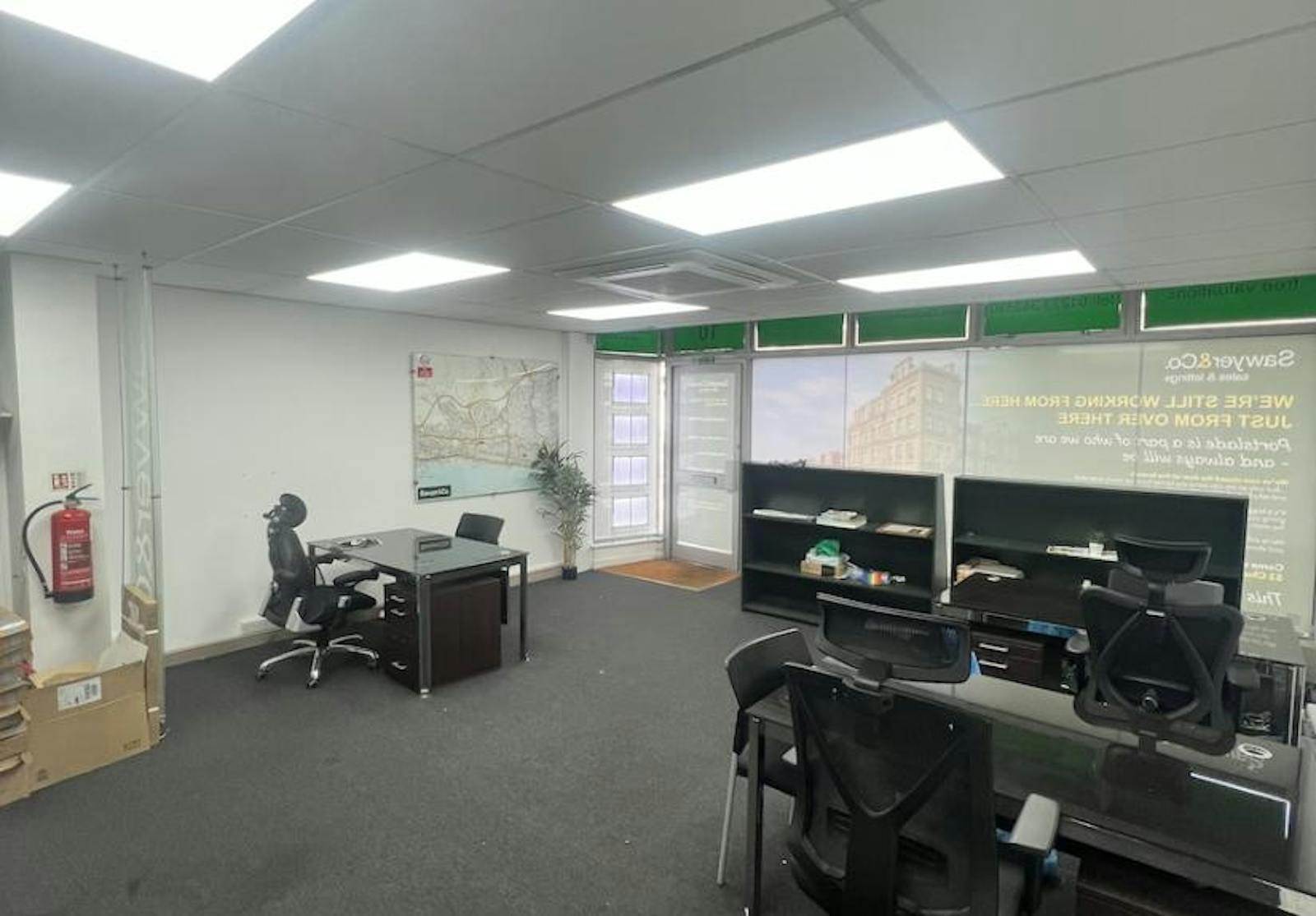 The premises are finished to a good specification, including a suspended ceiling with LED lighting, air conditioning, carpeting throughout, data floor boxes (untested), and generous storage facilities.