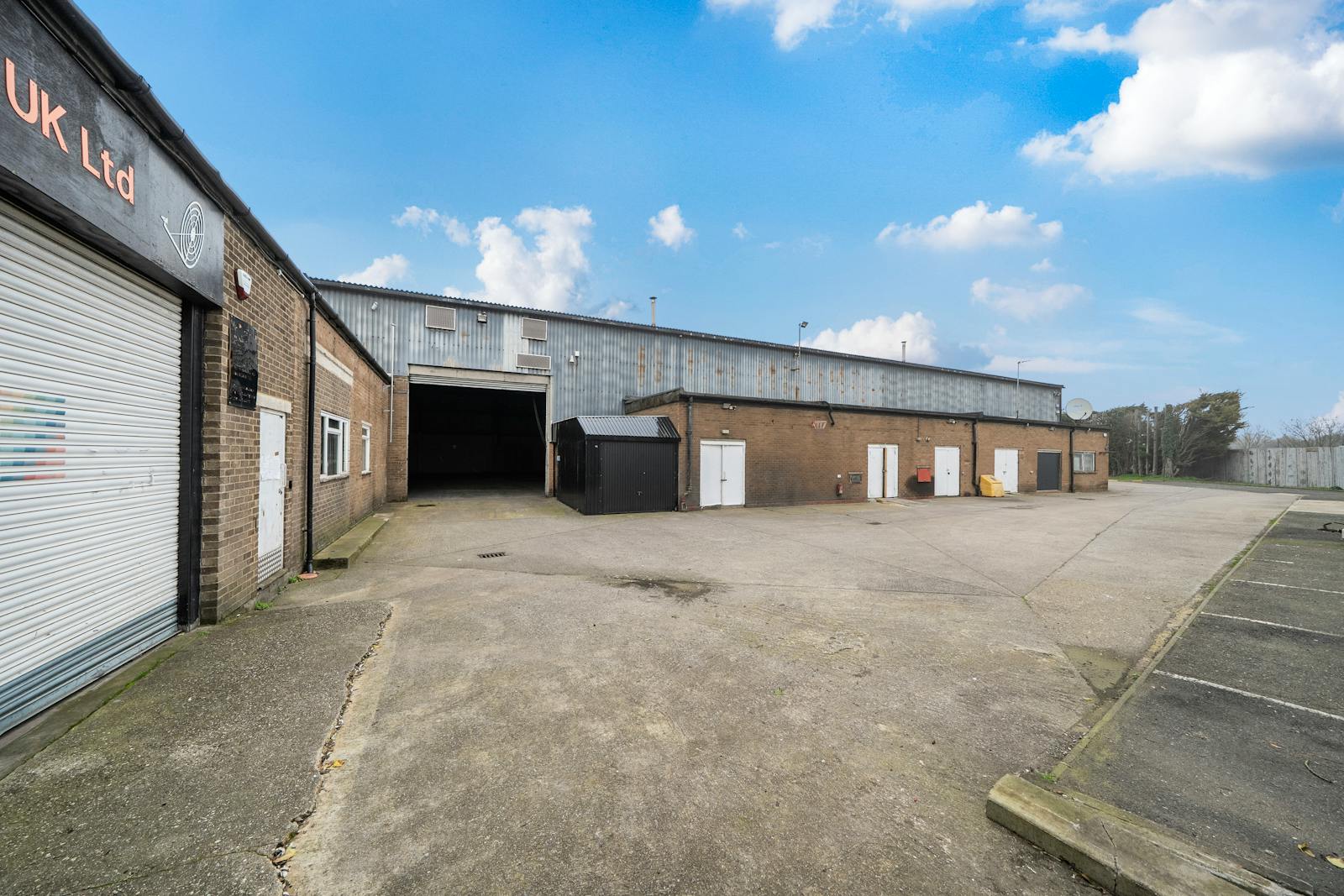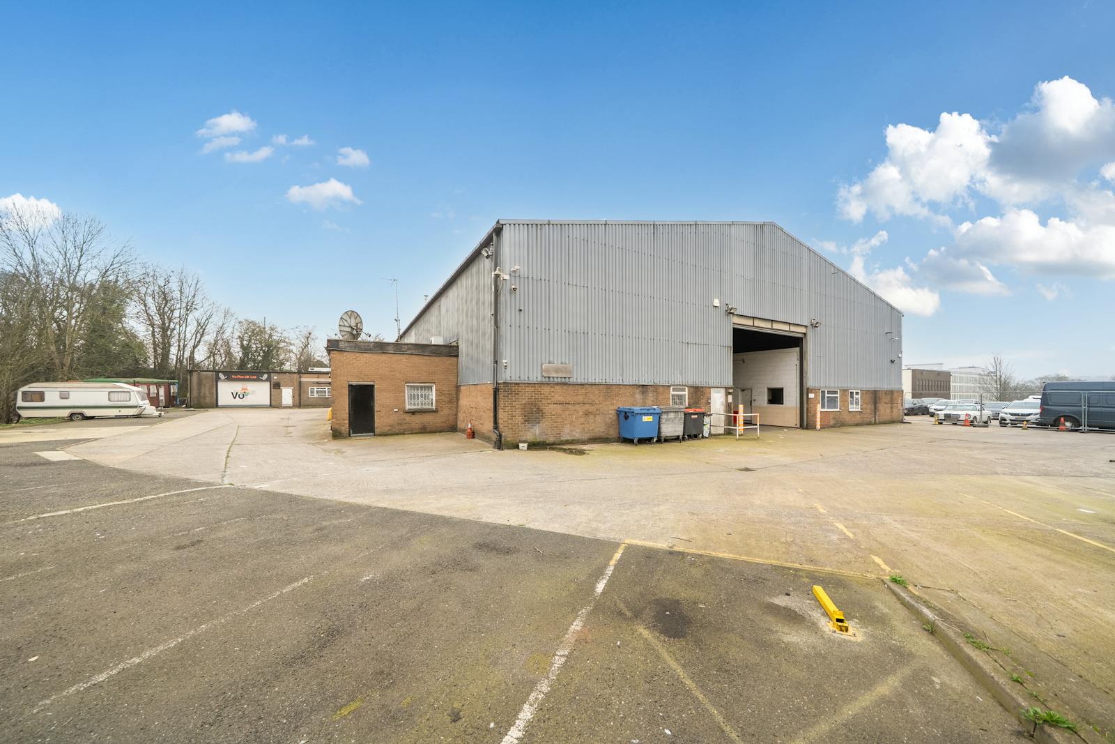 The building is of steel portal frame construction on a large site benefiting from a large private yard and dedicated car parking for over 60 cars. The open plan warehouse has 7.3m - 9.50m clear height, with access to the warehouse via two level access loading doors and 4 smaller shutters. There are a collection of offices in a self-contained office building to the side with an additional small warehouse and client facing reception and welfare facilities at ground floor.
