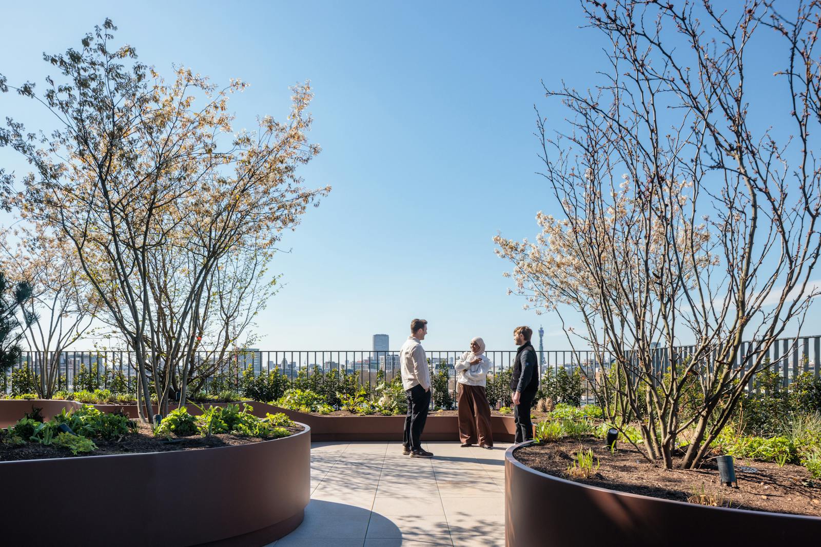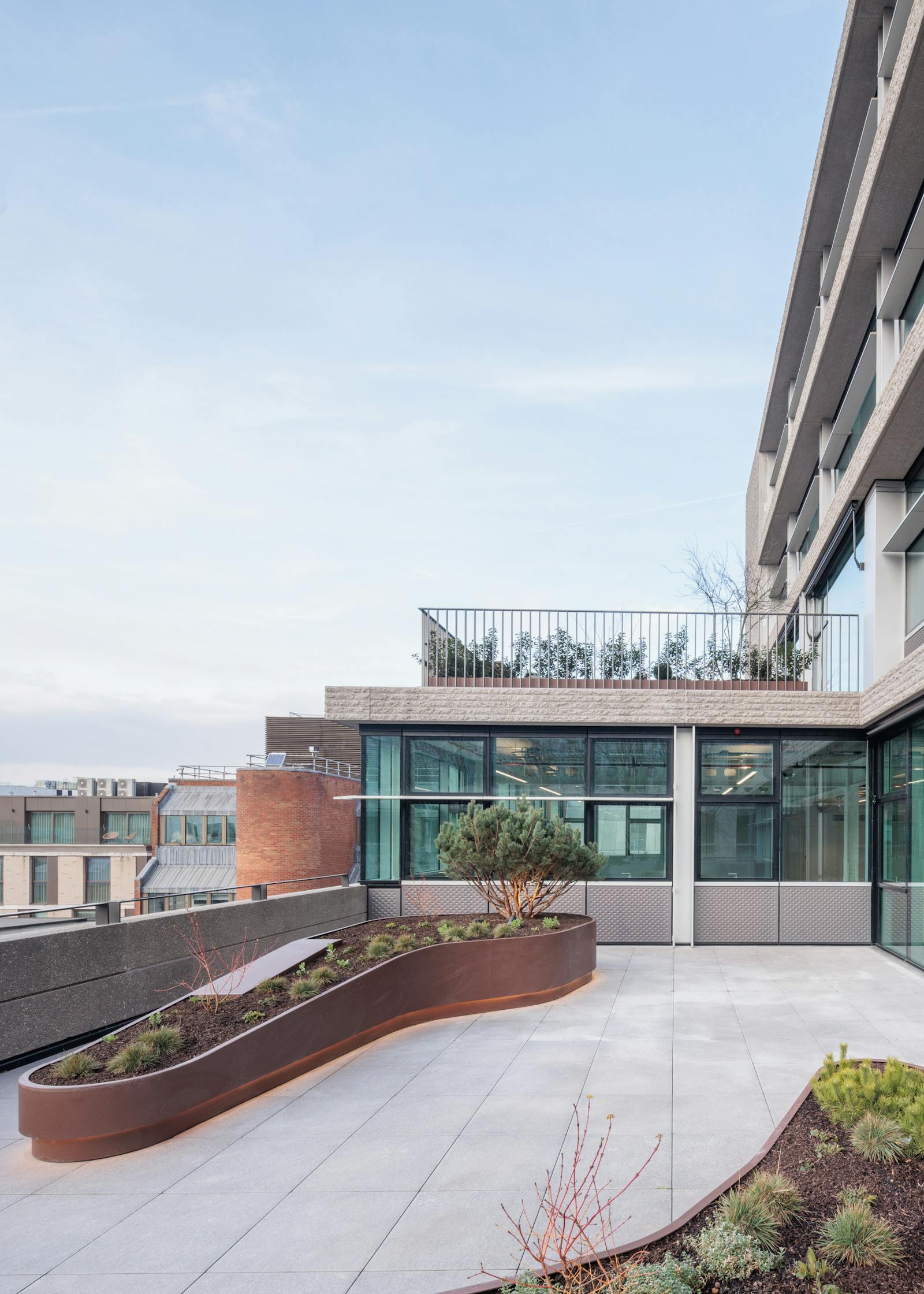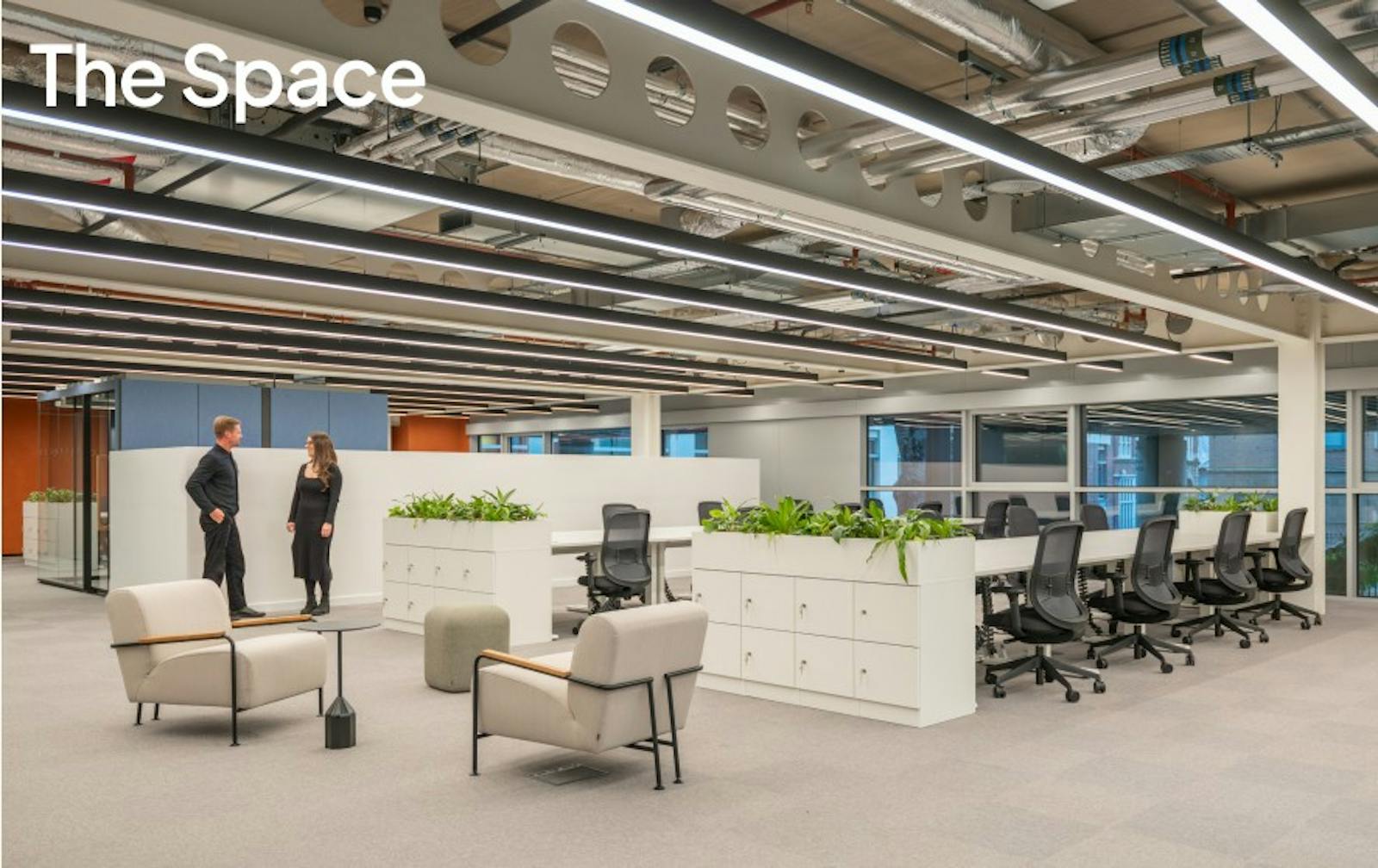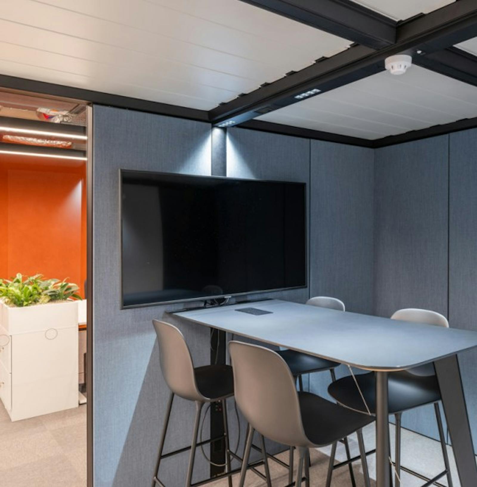 Surrounded by glazing and daylight, with views over gardens and trees, this private floor within the multi award-winning 100 Fetter Lane features 28 desks, two meeting pods, a teapoint, and space for breakout.