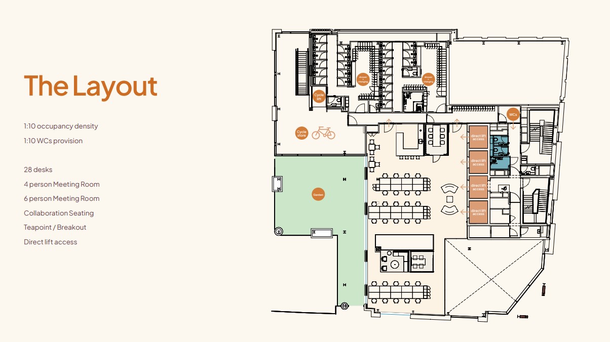 With direct lift access, the architect-designed interior comes complete with showers and cycle storage and full access to the building’s shared cafe amenity on ground floor. This self-contained workspace is ready for immediate occupation.