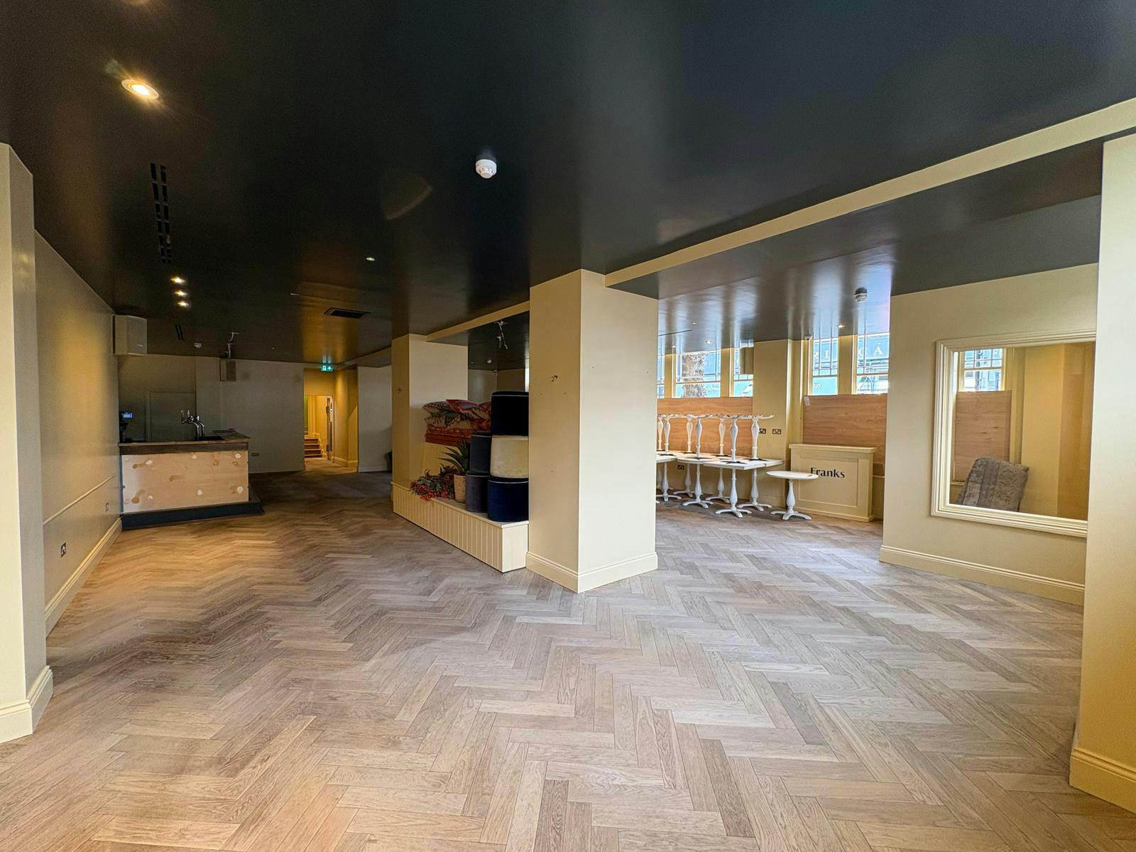 The property benefits from excellent street frontage, situated on a prominent corner plot. Previously fitted as a restaurant, it features wood flooring, a commercial kitchen, and a basement for storage. The premises include a fully functioning bar with draught pumps contracted through Budweiser (contract eligible for renewal).