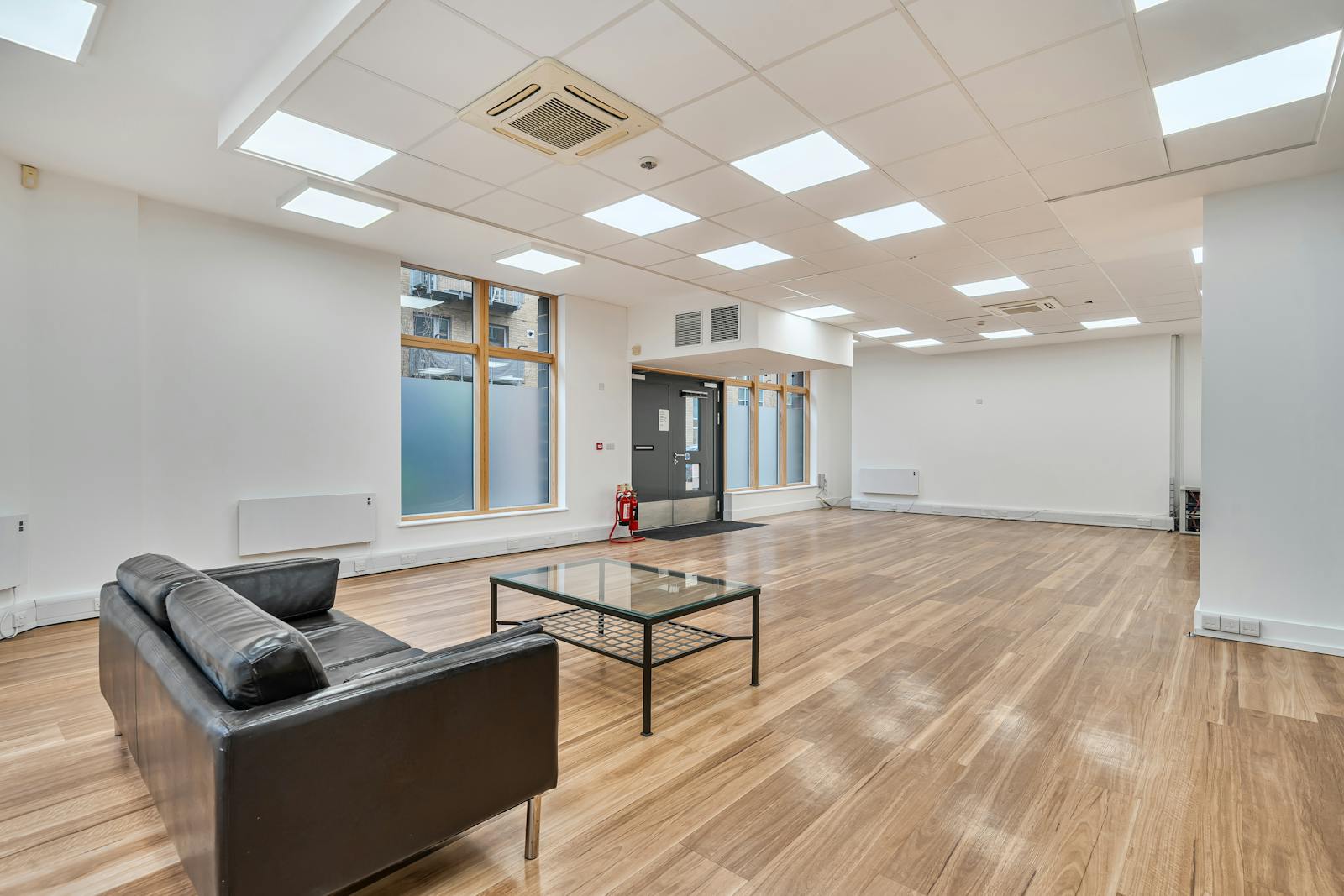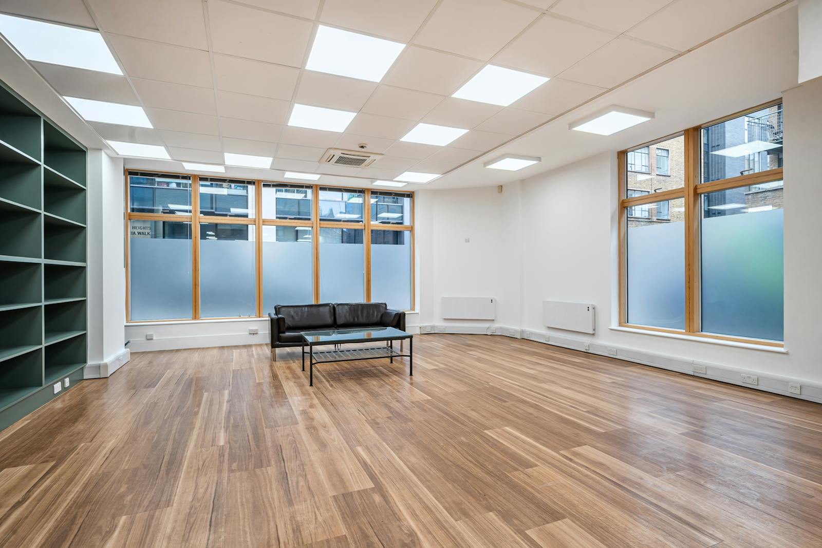 Offered as an open plan style office, including a kitchenette perfect for a breakout area for the team. The natural light throughout is strengthened through the large windows circling the unit, the frosted glass ensure no privacy is substituted. The recent refurbishment is showcased through the shelving unit spanning the interior of the wall, allowing the occupier to personalise the space.