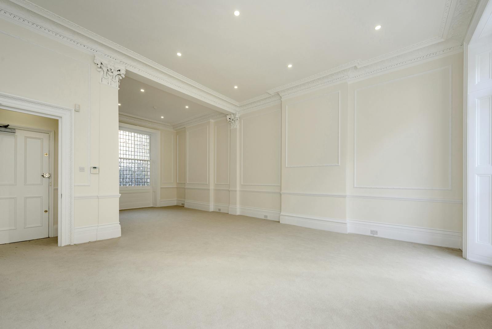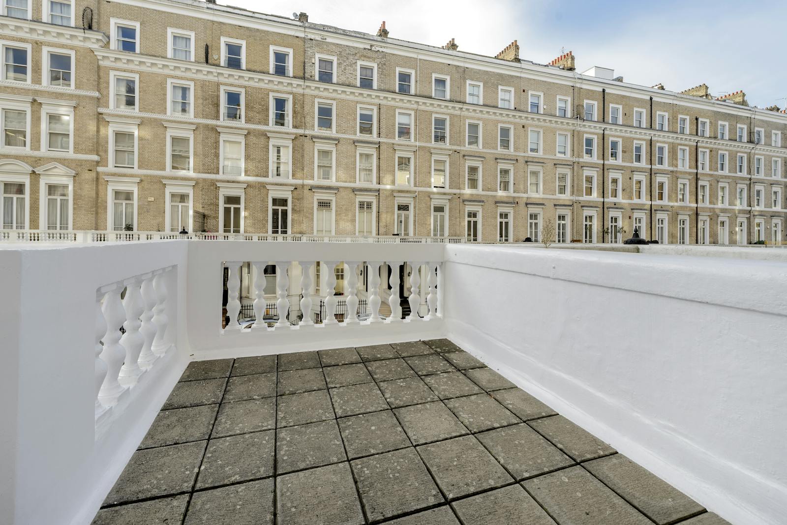 The property can be accessed via the grand original staircase or a shared passenger lift and enjoys the most sumptuous of interiors by virtue of its incredible 3.7m ceiling heights, ornate and extensive original decorative cornicing and some gorgeous views across this special parade of handsome buildings. The property has just been comprehensively refurbished with carpeted flooring, spectacular paintwork and extensive natural light that invites you out to enjoy the wonderful private terracing.