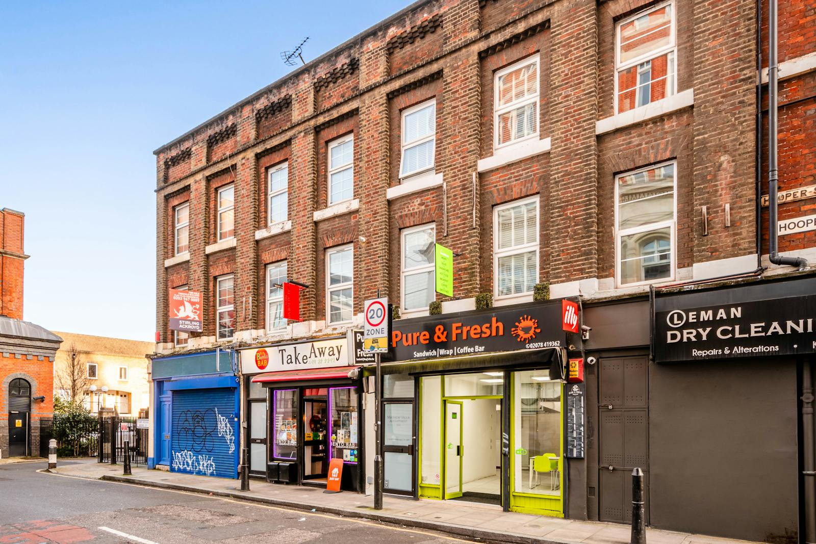 Located on the south side of Hooper Street at its junction with Leman Street, the property occupies a prominent corner position within a well-established mixed-use area. The surrounding locality comprises a strong mix of office buildings, residential developments and ground floor commercial occupiers, providing steady footfall throughout the week. The property is well positioned between Aldgate and Whitechapel, with excellent transport links nearby. Tower Gateway DLR station and Aldgate East station are both within walking distance, offering convenient access across Central London and Docklands.