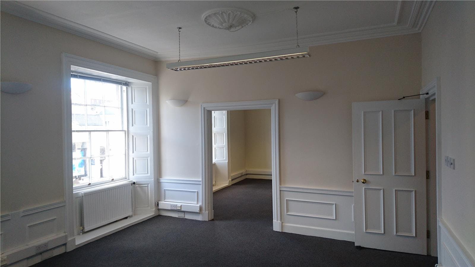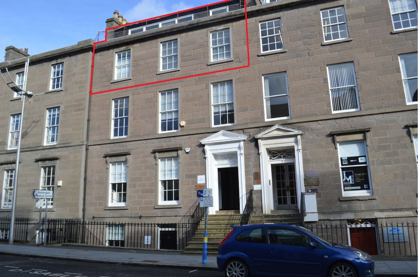The subjects comprise an attractive second and attic floor office suite within a Category A Listed three storey mid-terraced tenement building of traditional stone wall construction with pitched and slated roof over.