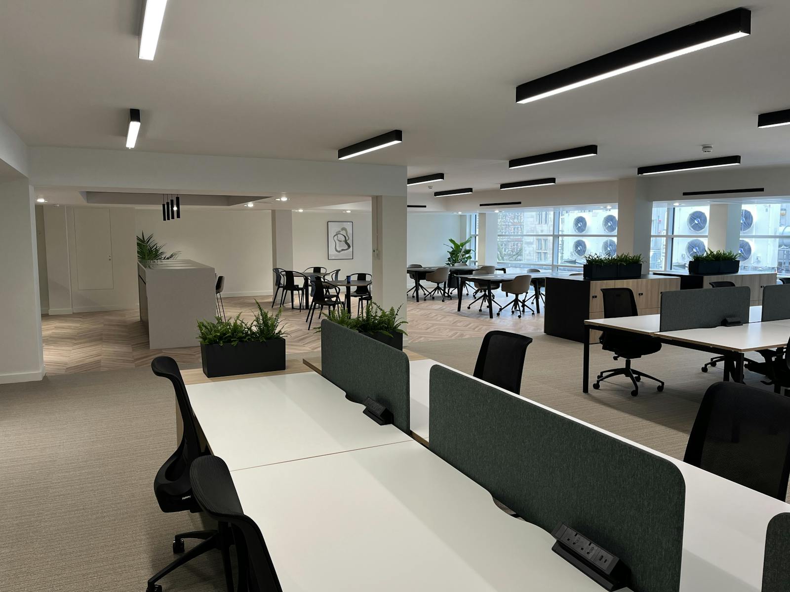 The part 3rd floor has been fully fitted out. It benefits from 50 desks plus agile working areas, 2 meeting rooms, an extensive breakout area and a dedicated reception. The 2nd floor has been finished to a CAT A condition. There is the ability to have a self contained entrance, connection to the 1st floor which is being refurbished and on to the 2nd floor.