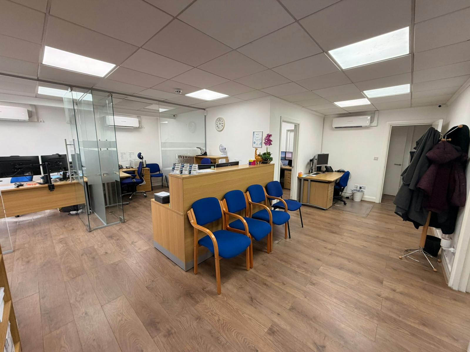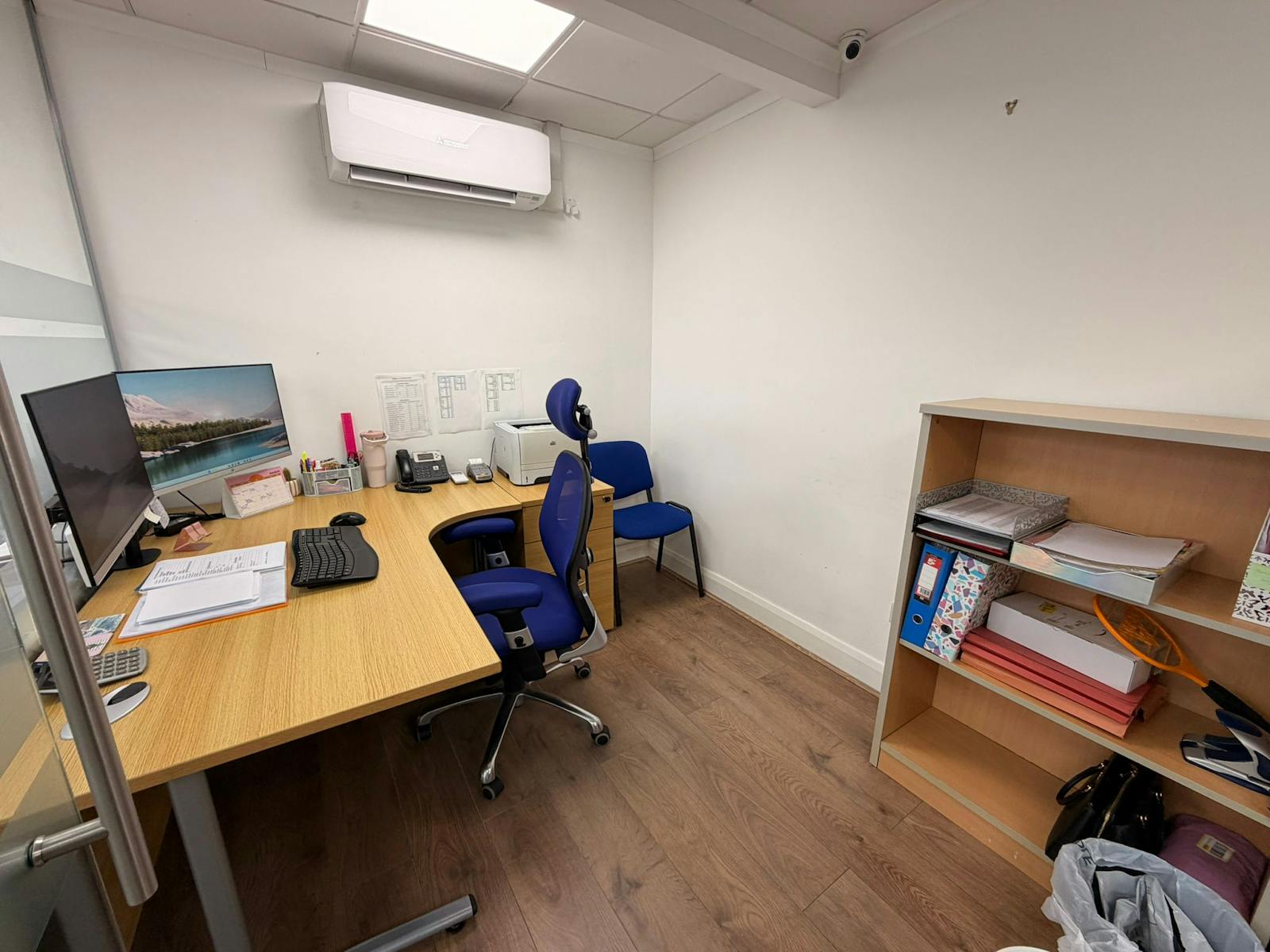 A well presented ground floor unit suitable for retail or office use, featuring separate office areas and dedicated storage space. The property also benefits from a fitted kitchen, WC facilities and one allocated parking space, along with additional lay-by parking to the front.
