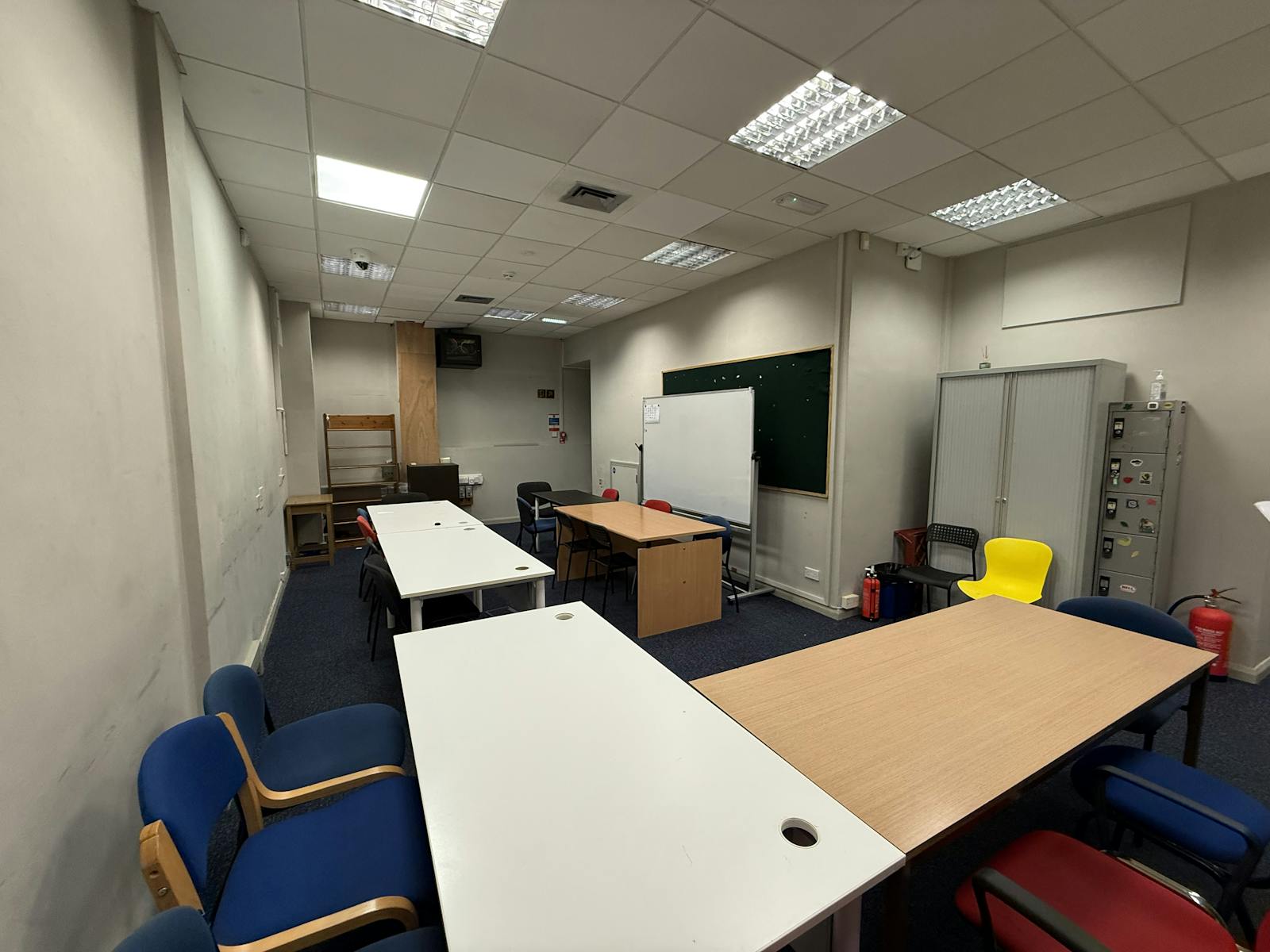 The ground floor offers flexible open-plan accommodation with private meeting and breakout rooms, ideal for retail, showroom or client-facing office use. The first floor provides additional breakout space, staff facilities and storage, creating a practical and efficient layout.