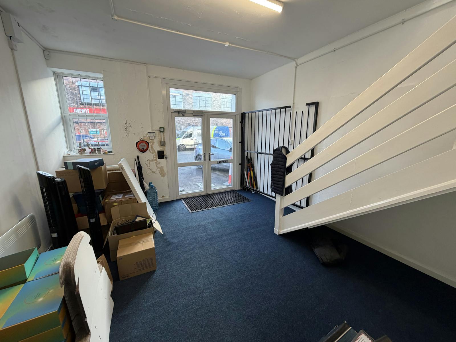 The premises are set behind forecourt parking and provide predominantly open plan accommodation on the ground floor with WC and kitchen facilities.