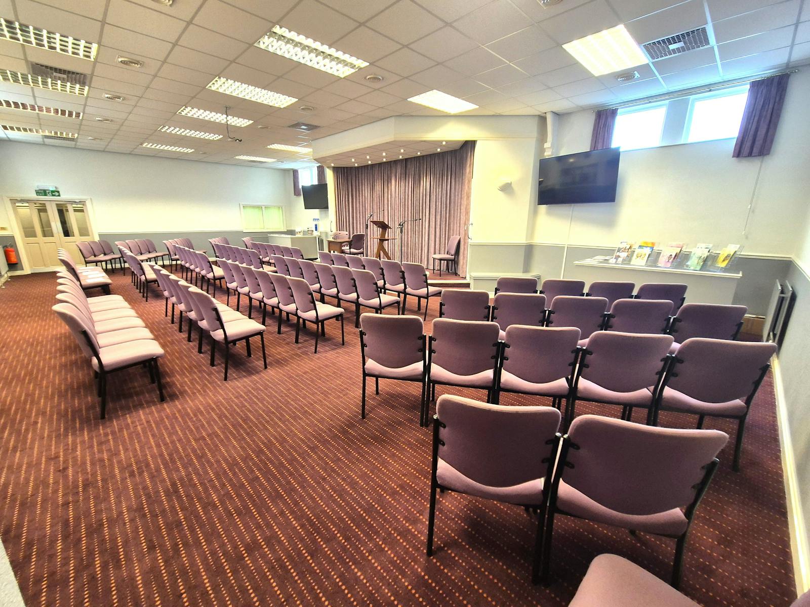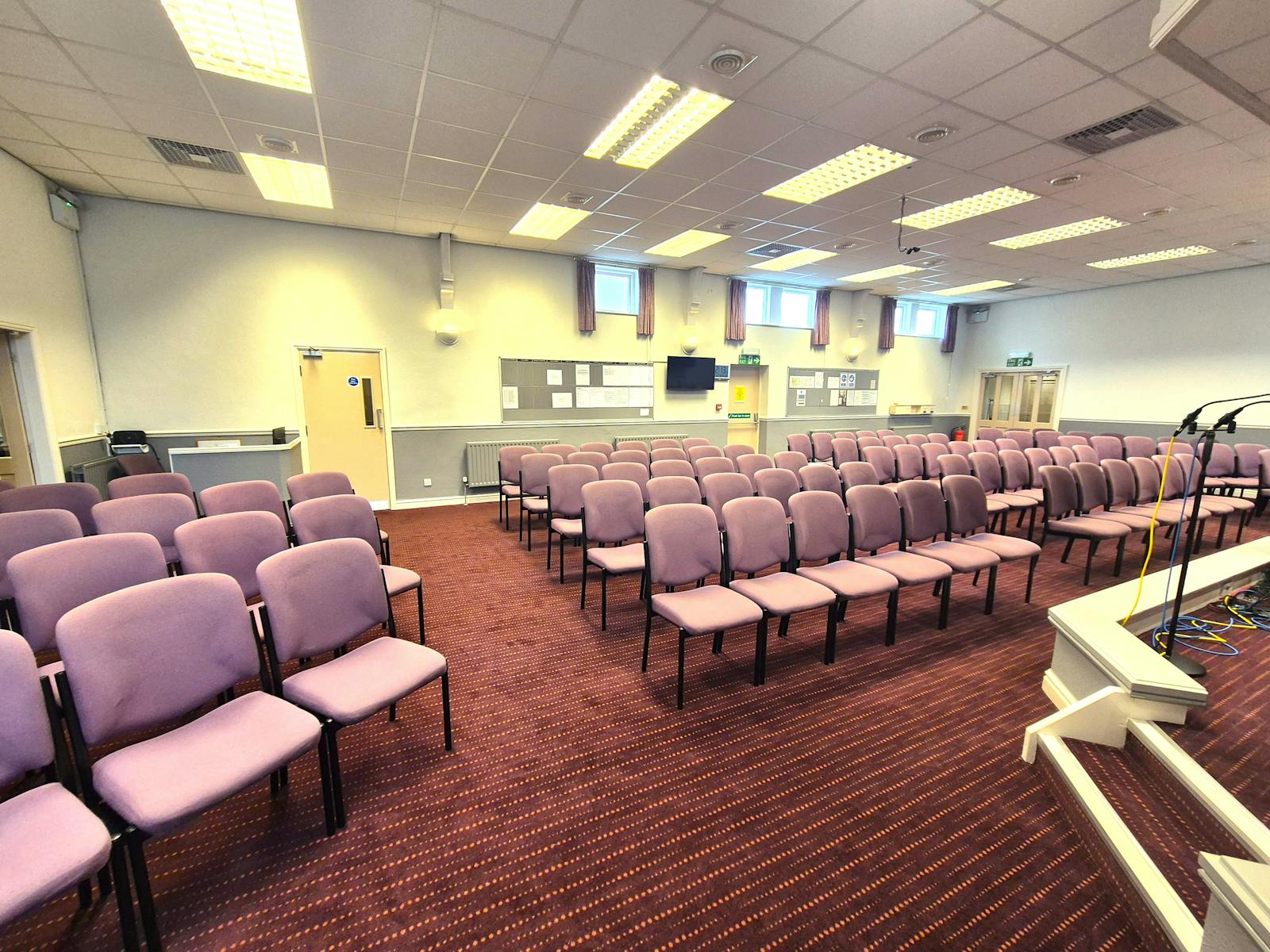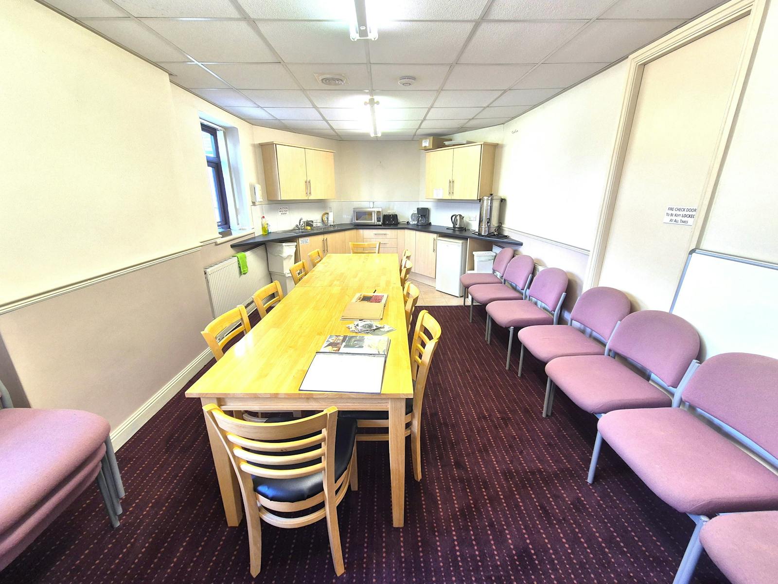 The property provides a meeting place with accommodation over ground and first floors with rendered brick work elevations under a pitched roof. The property provides a small private courtyard to the rear of the property and is self